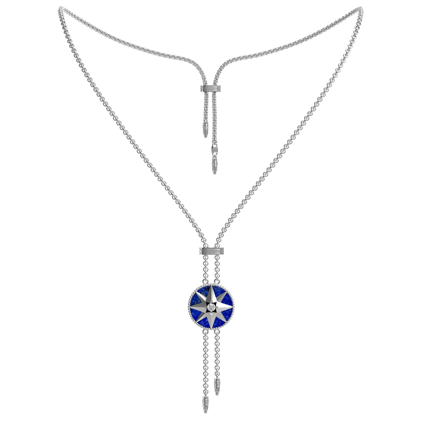 Колье из белого золота c фианитом, лазуритом и перламутром