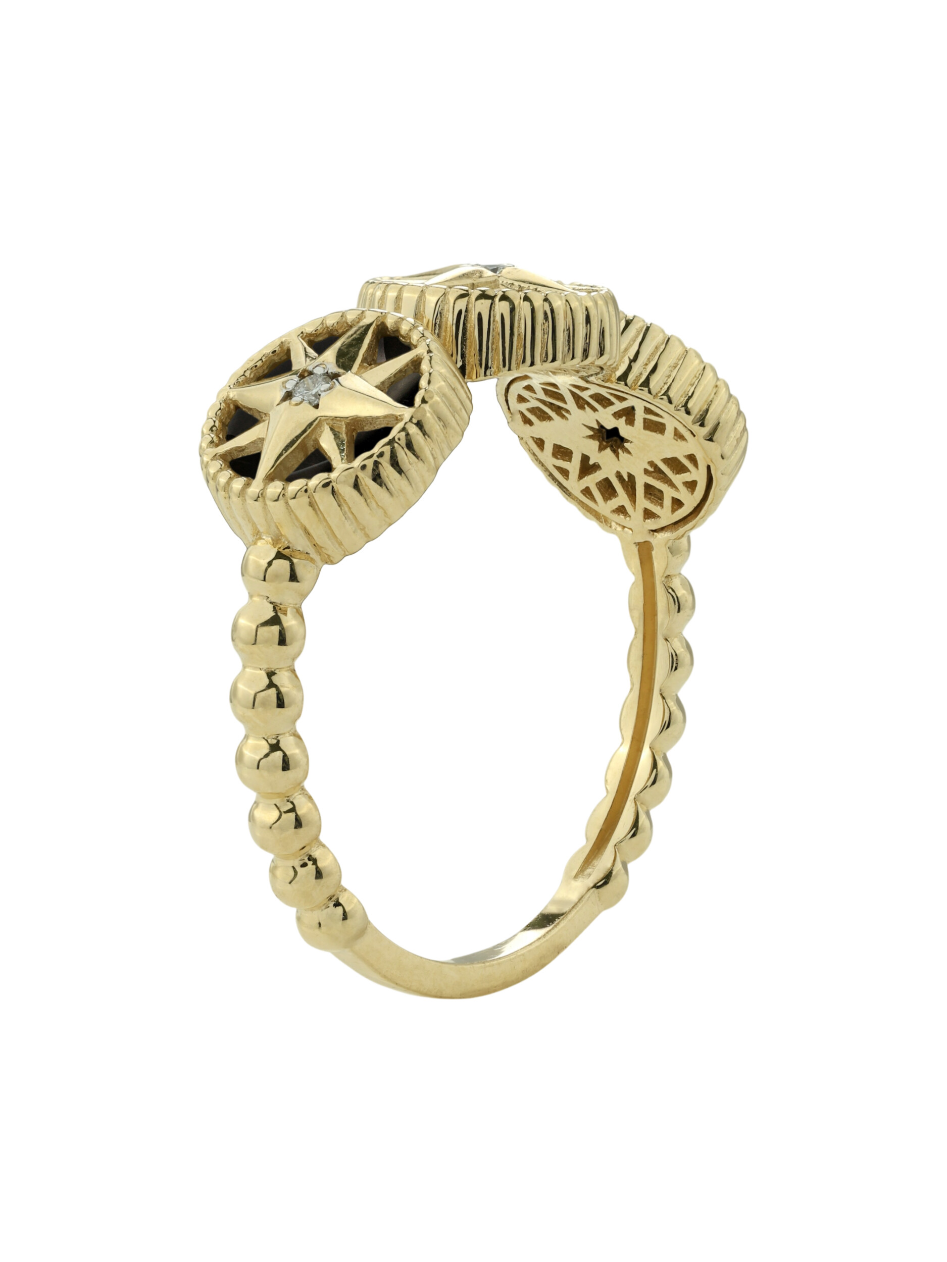 Кольцо из лимонного золота c бриллиантами и ониксом