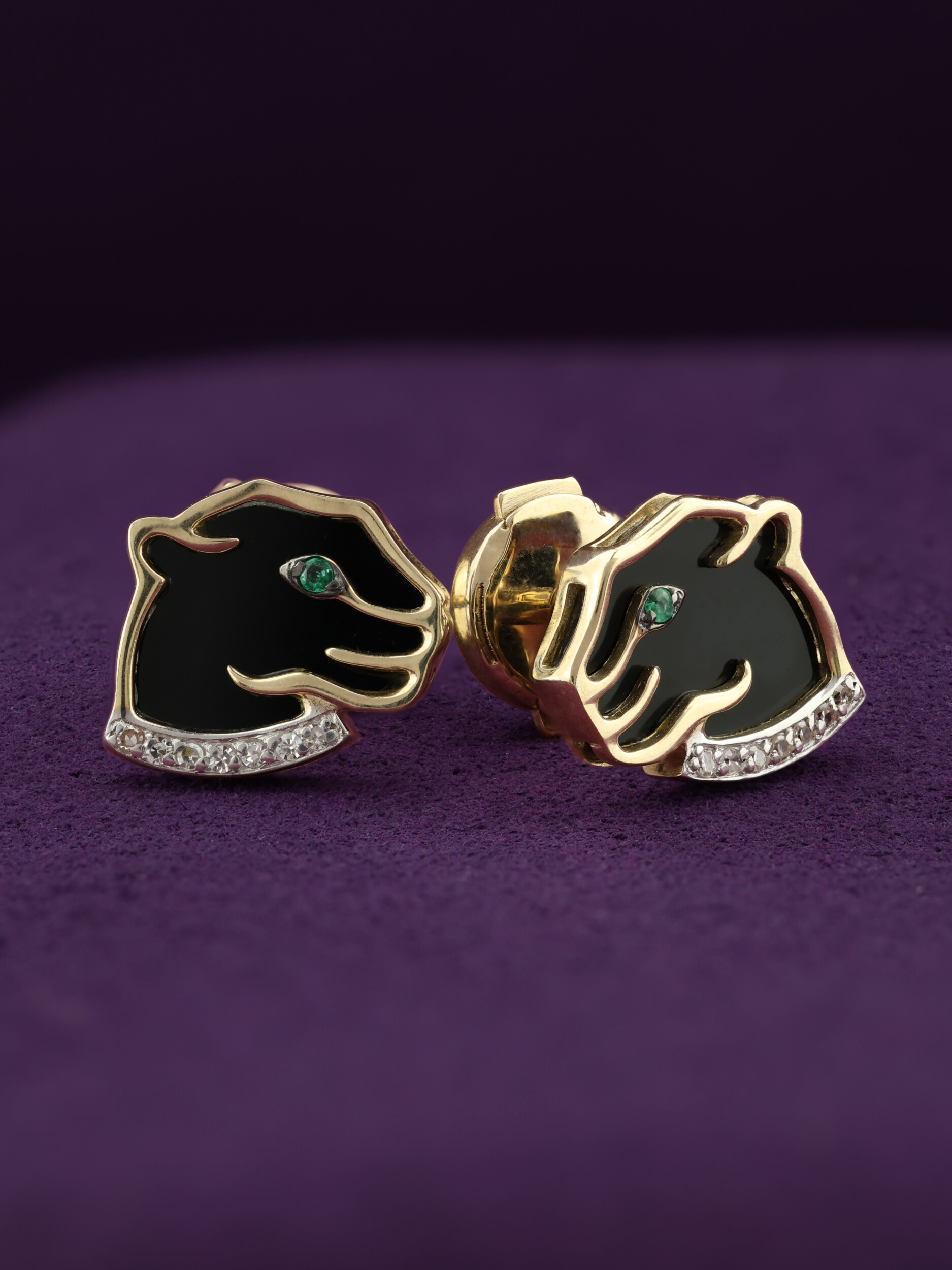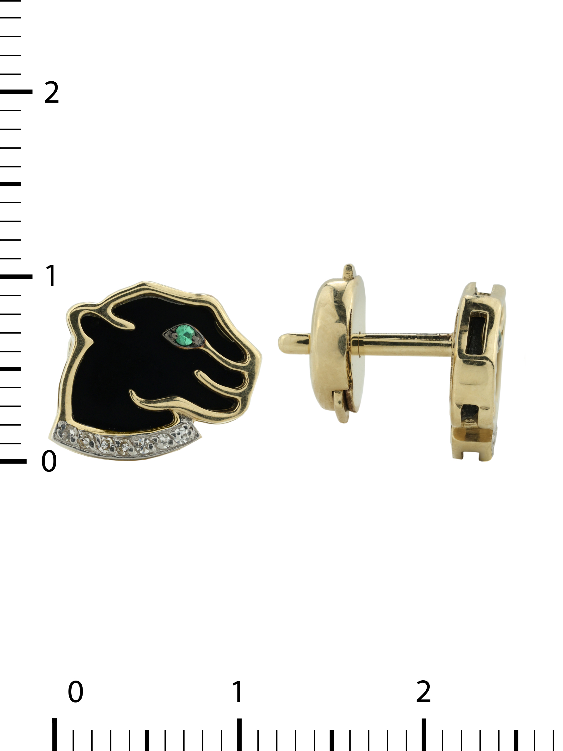 Серьги из лимонного золота c бриллиантами, изумрудом и ониксом