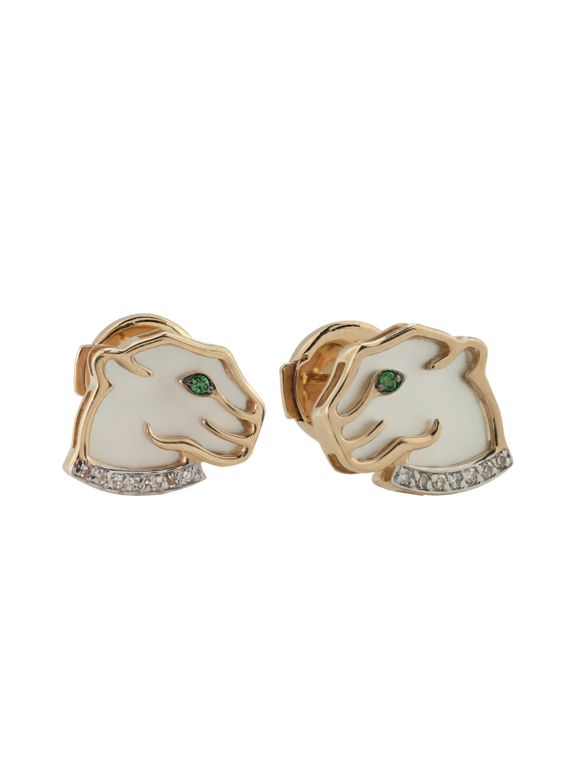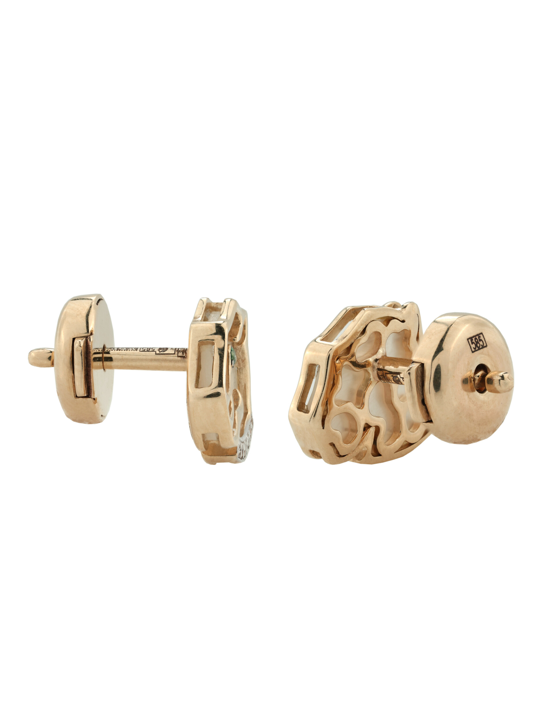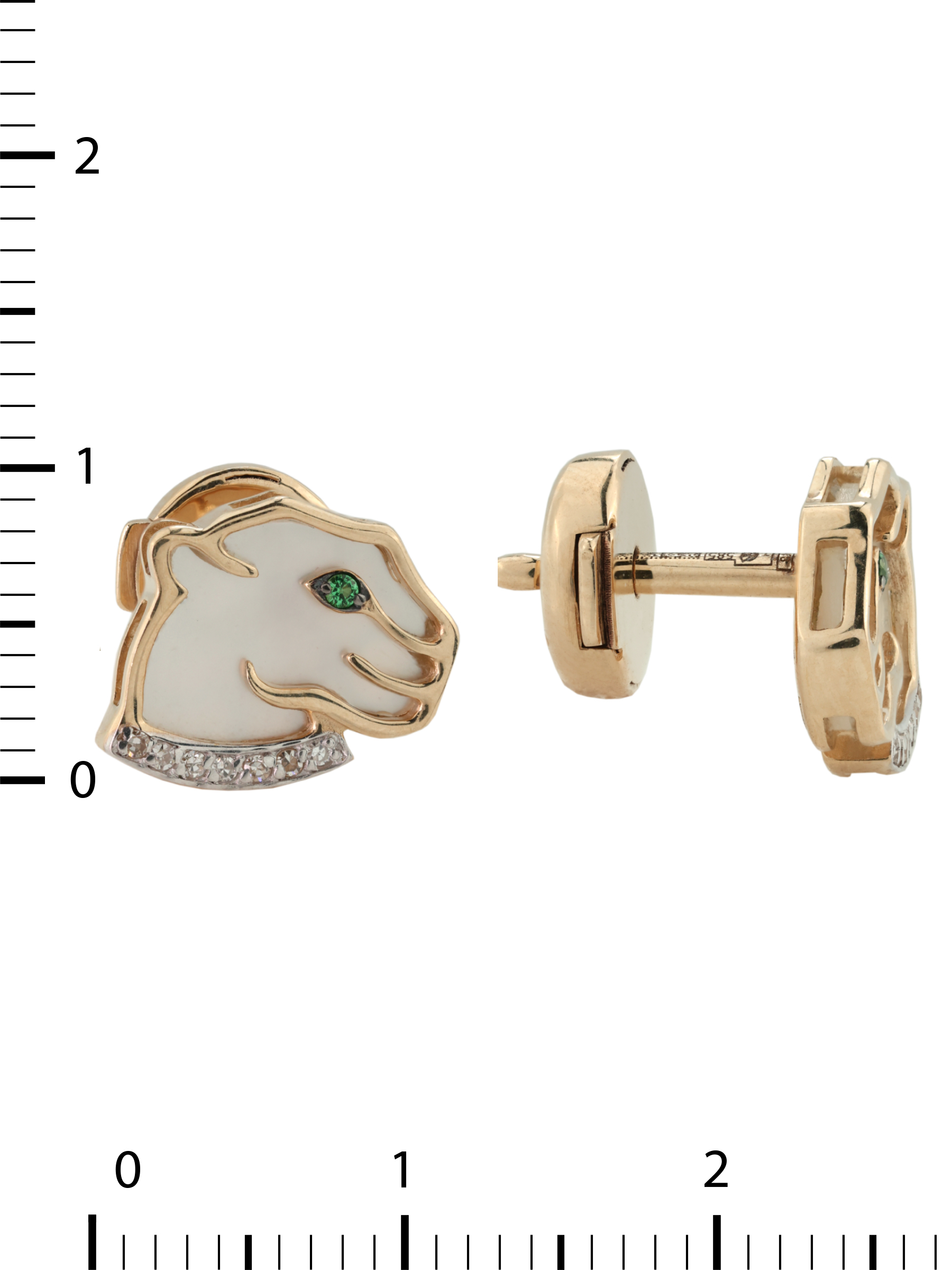Серьги из золота c бриллиантами, изумрудом и перламутром