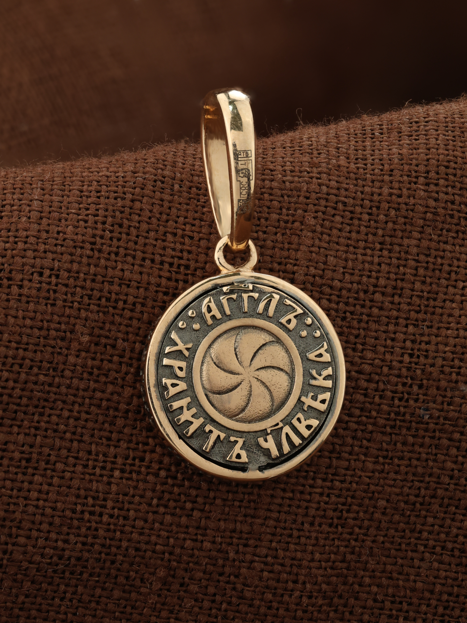 На торцевой стороне образка размещены слова: «ОБЕРЕГАЮ ПОКРЫВАЮ ЗАЩИЩАЮ».