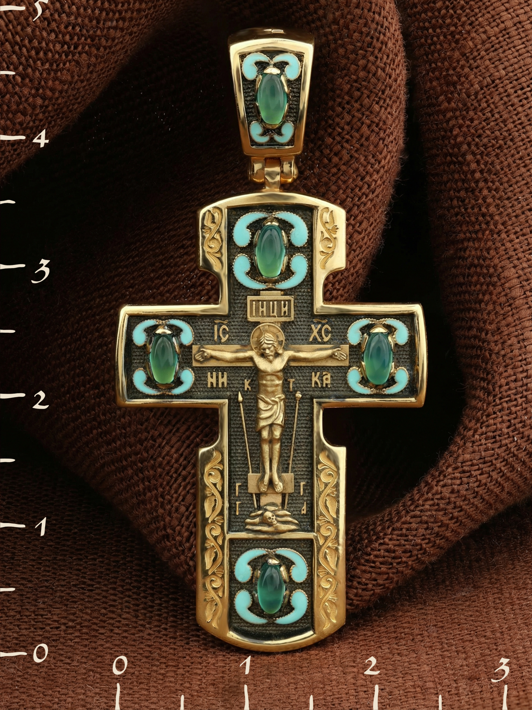 Крест из лимонного золота c эмаль и хризопразом