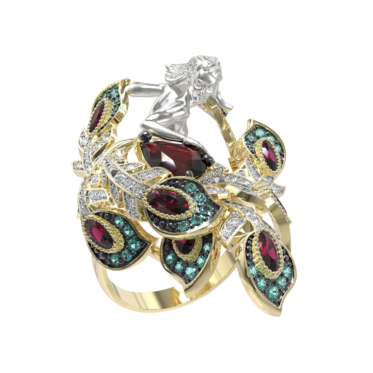 Кольцо из лимонного золота c фианитом и гранатом
