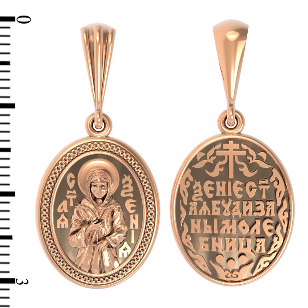 На лицевой стороне образка изображена Святая блаженная Ксения Петербургская, в миру Ксения Григорьевна Петрова.