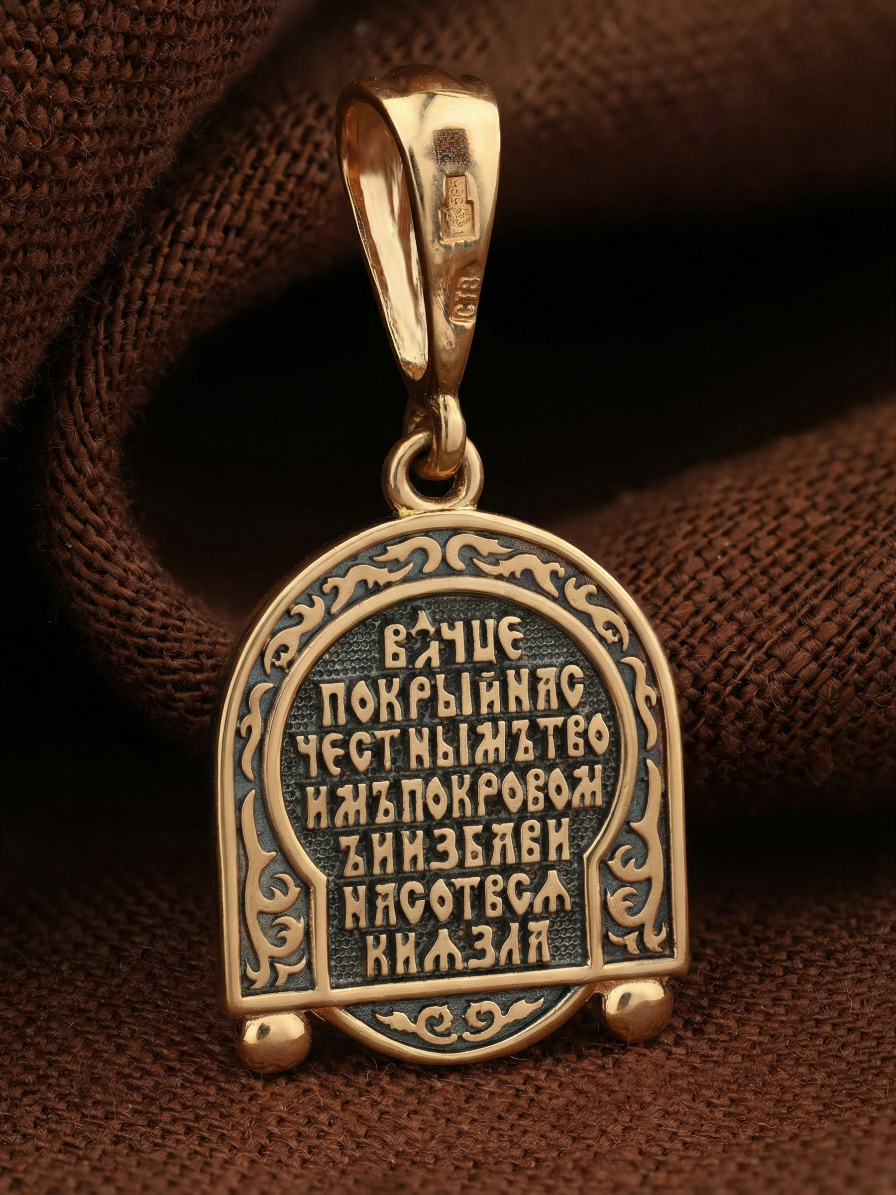 На обороте образка написано: «Владычице, покрой нас Честным Твоим покровом и избави нас от всякия зла».