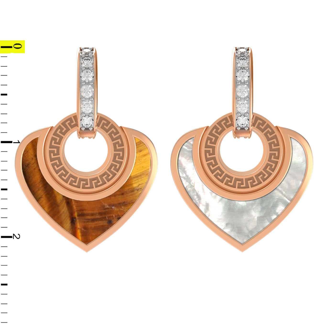 Из лимонного золота c фианитом, тигровым глазом и перламутром