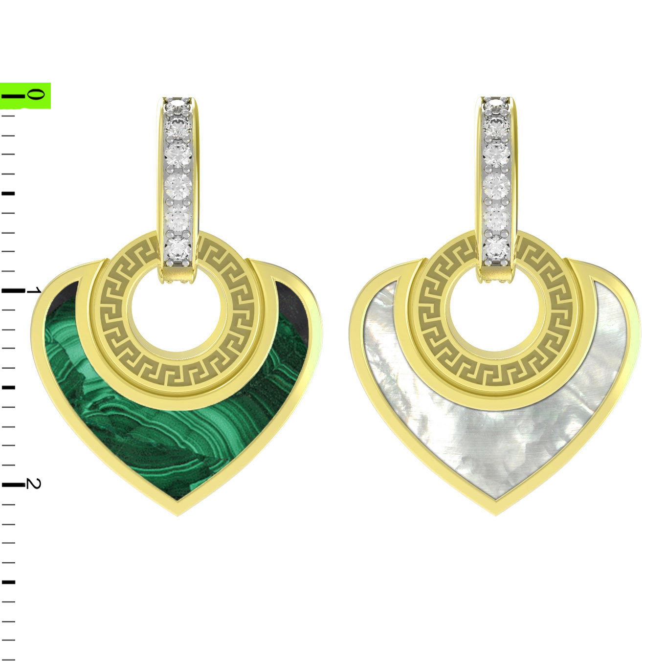 Из золота c фианитом, малахитом и перламутром