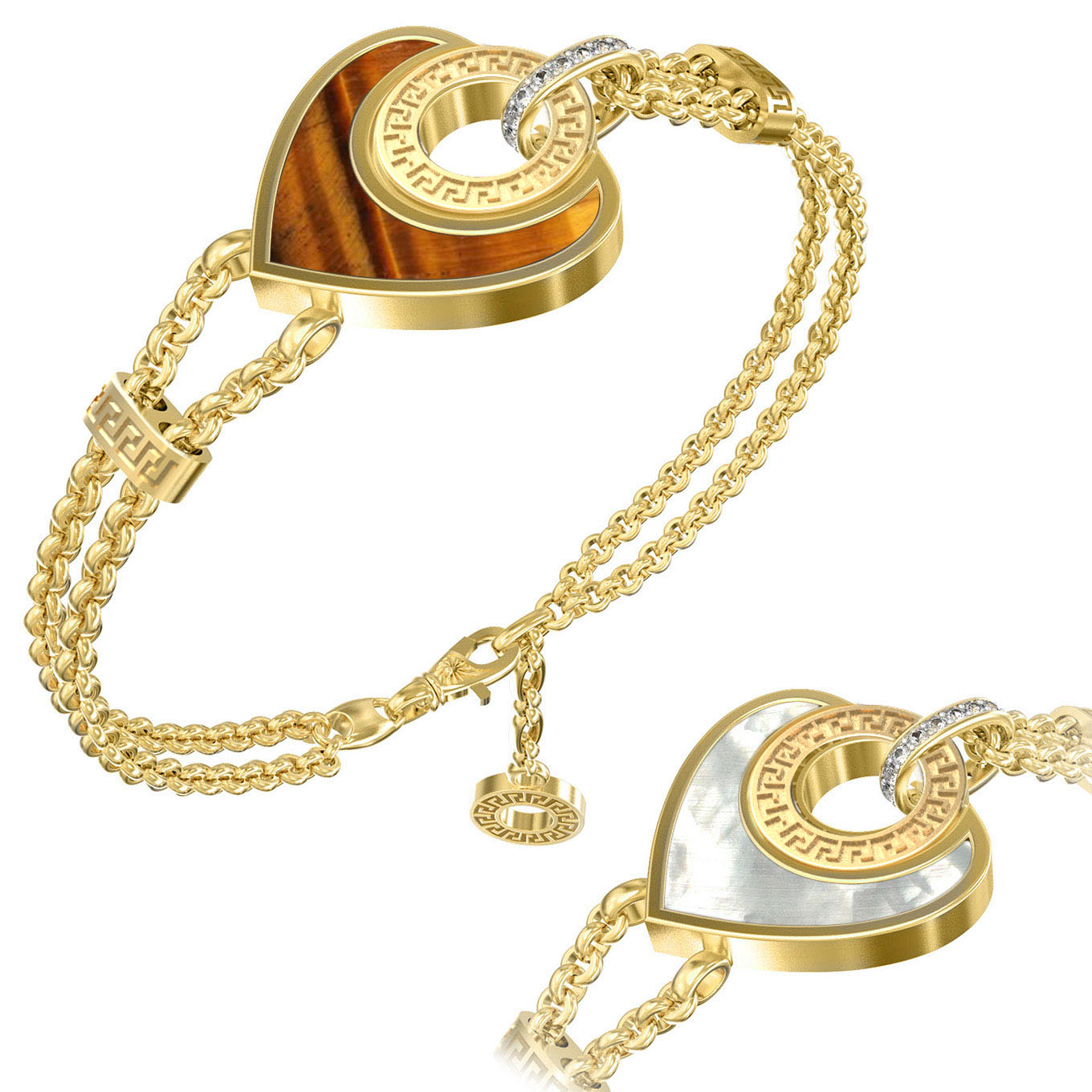 • Браслет из лимонного золота c фианитом, тигровым глазом и перламутром