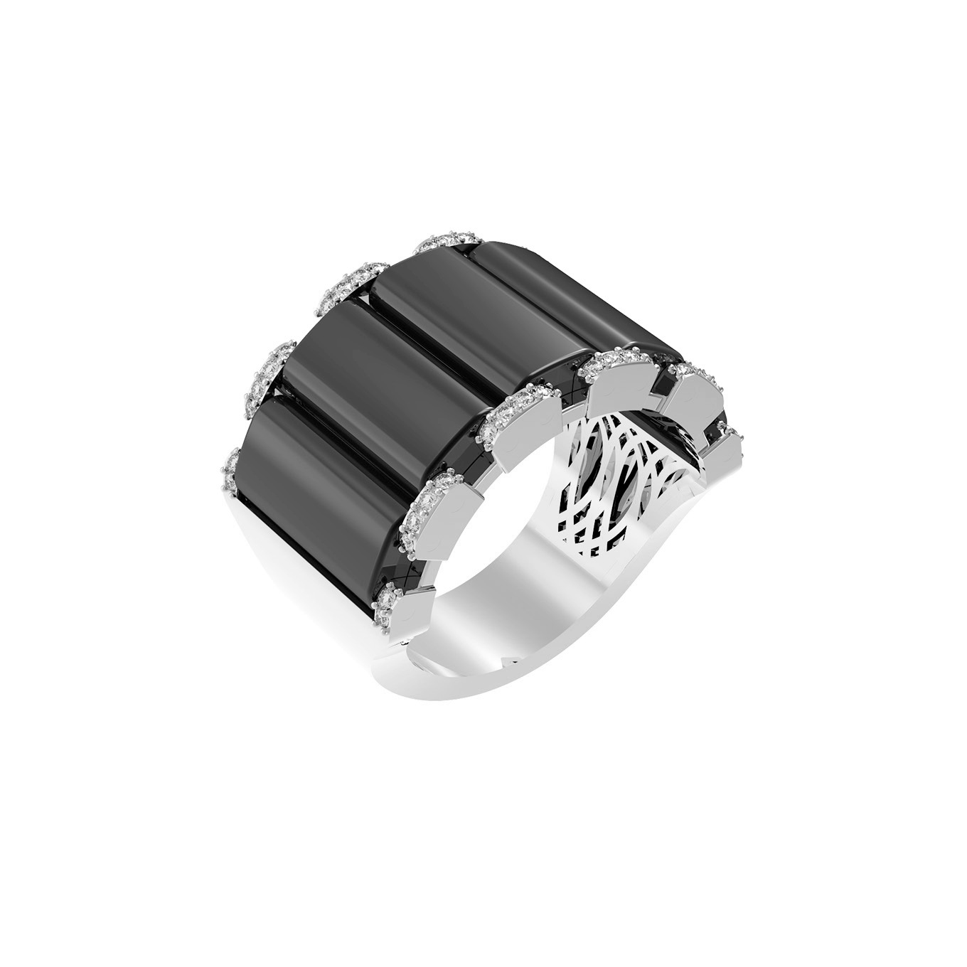 Кольцо из белого золота c бриллиантами и ониксом