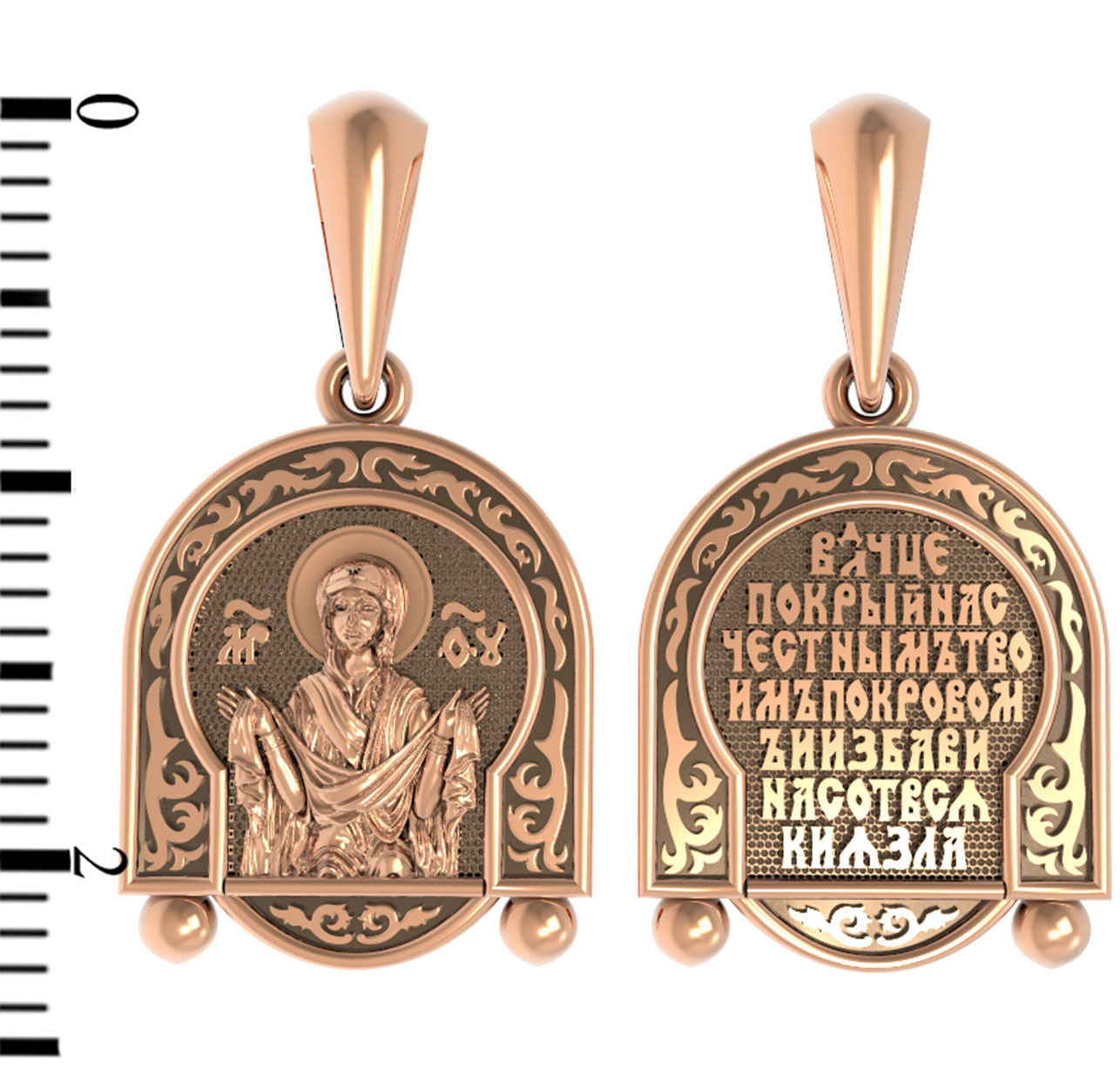 На обороте образка написано: «Владычице, покрой нас Честным Твоим покровом и избави нас от всякия зла».