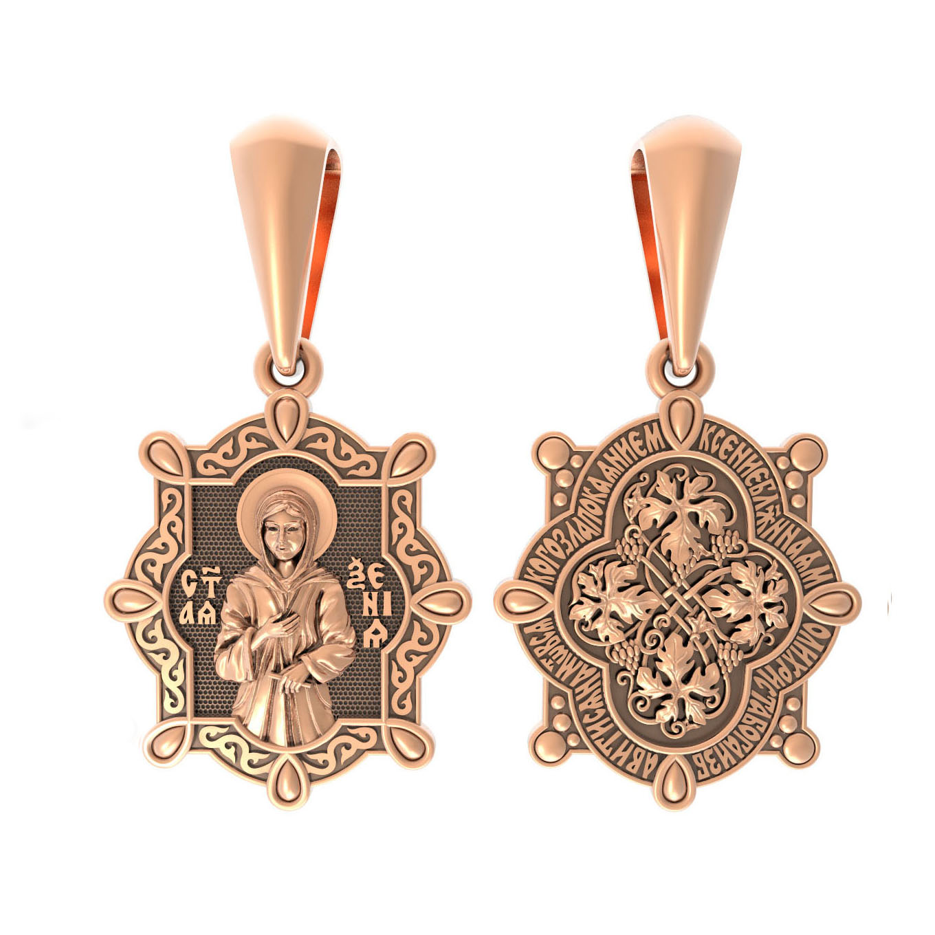 На оборотой стороне образка написана молитва: «Ксение блаженная, моли Христа Бога избавитися нам от всякаго зла покаянием.»