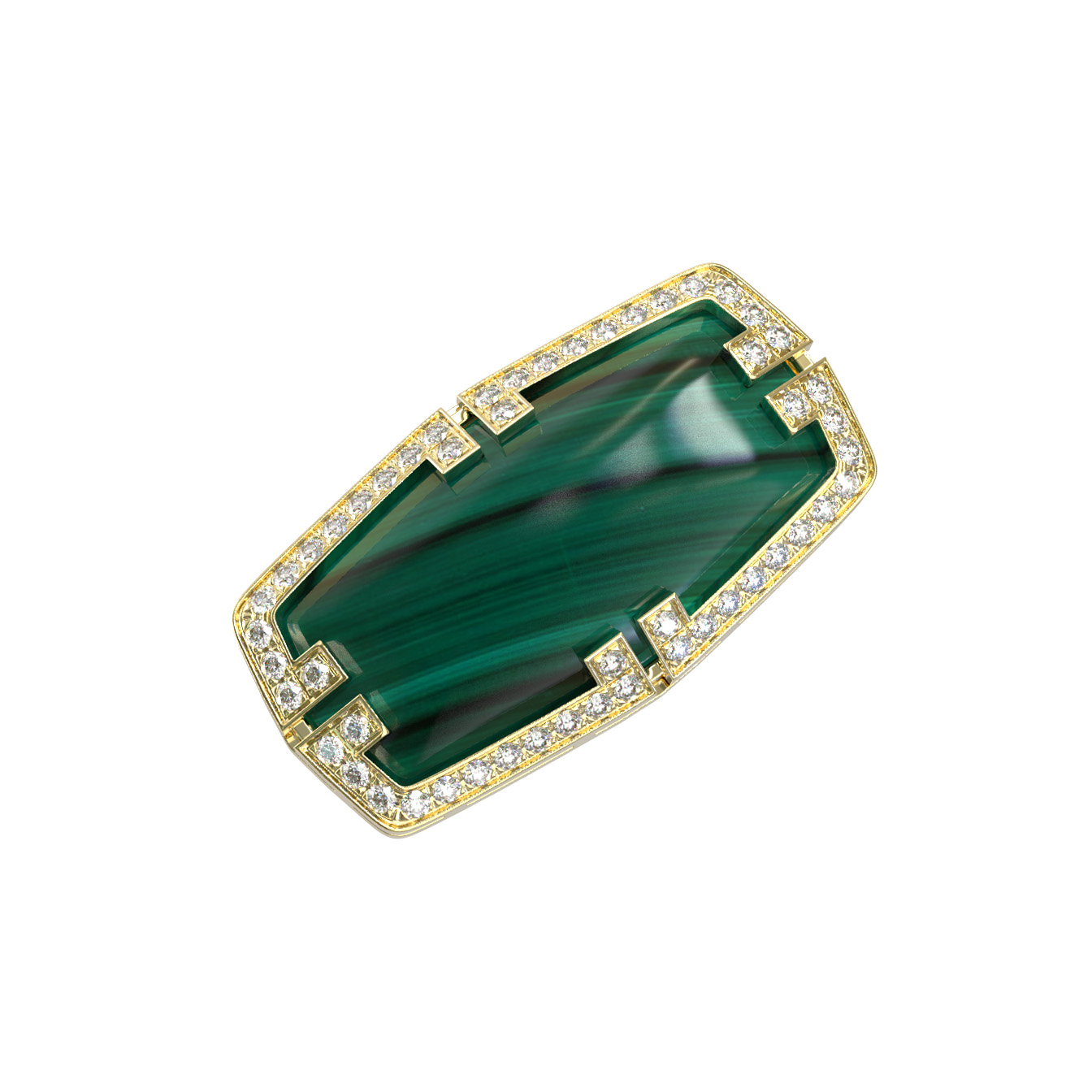 Кольцо из лимонного золота c бриллиантами, рубином и малахитом