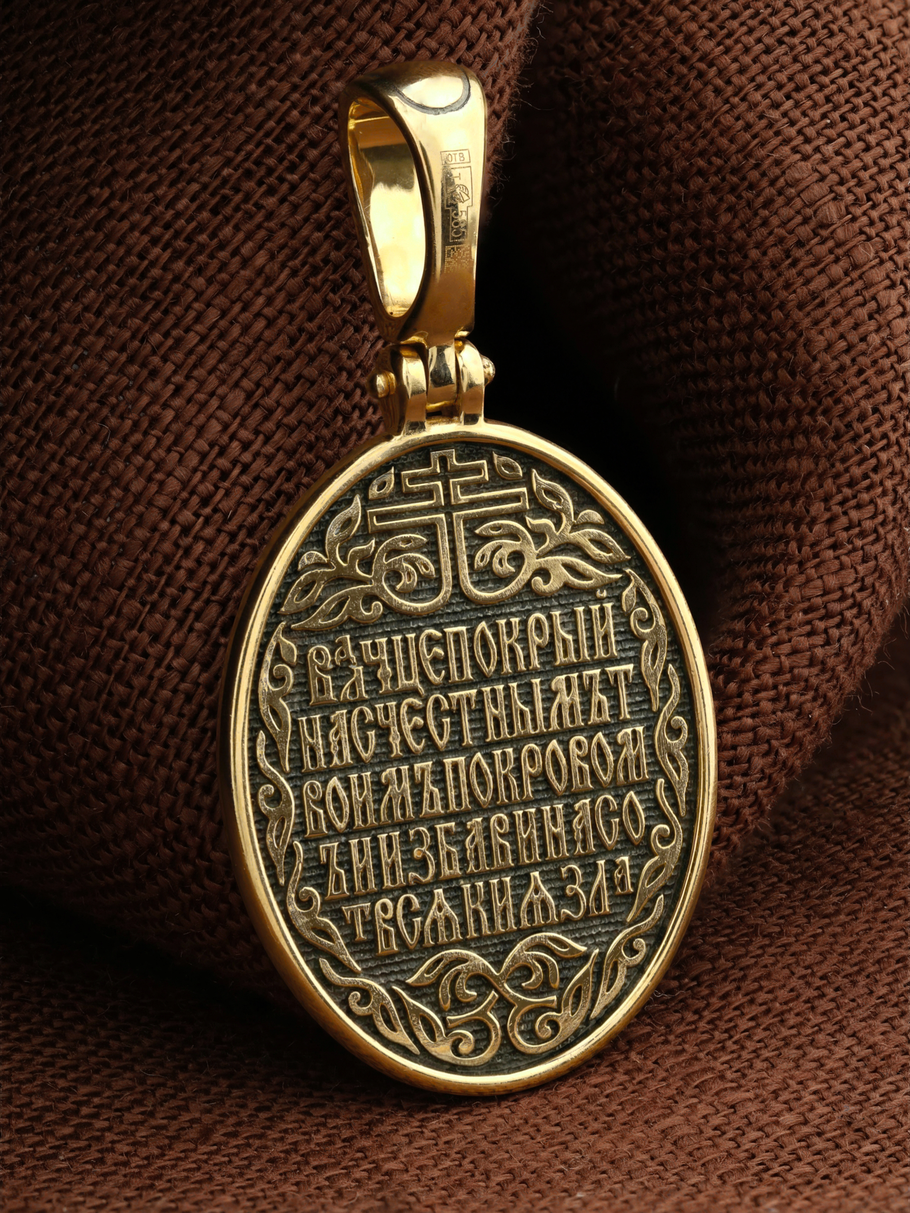 На обороте образка написано: «Владычице, покрой нас Честным Твоим покровом и избави нас от всякия зла».