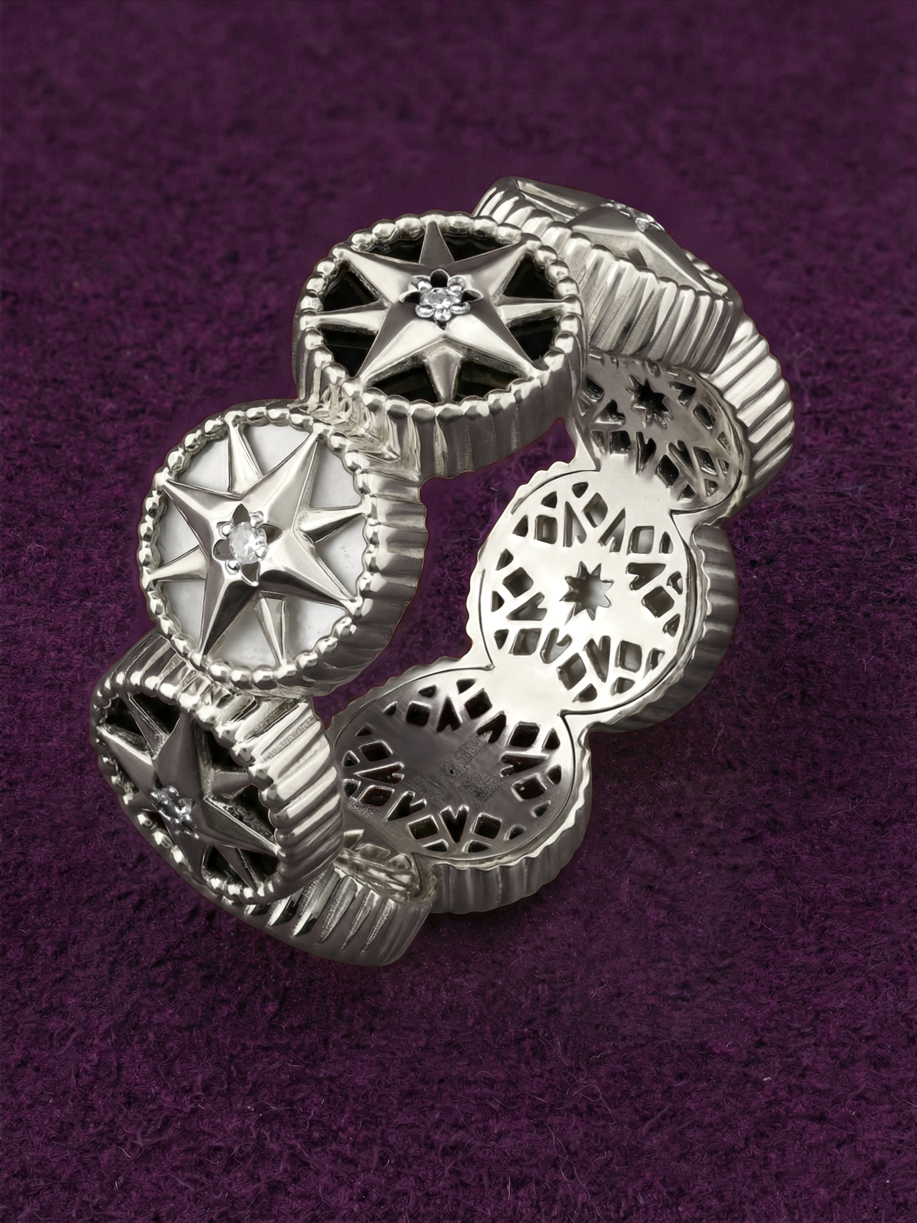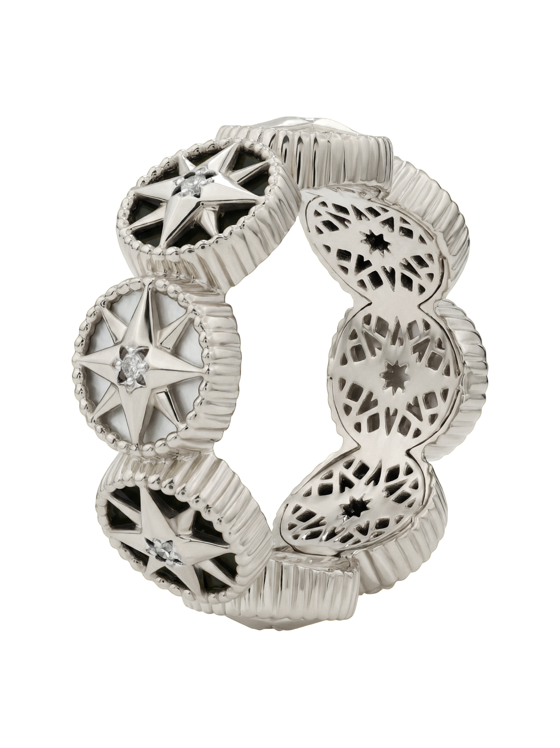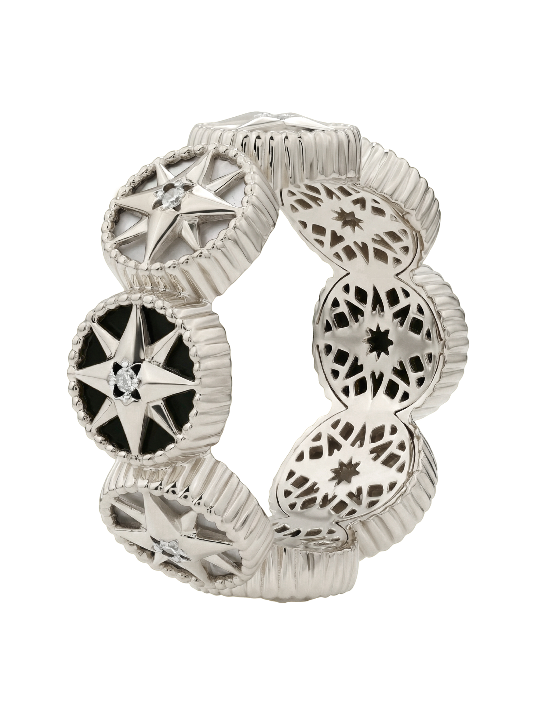 Кольцо из белого золота c бриллиантами, ониксом и перламутром