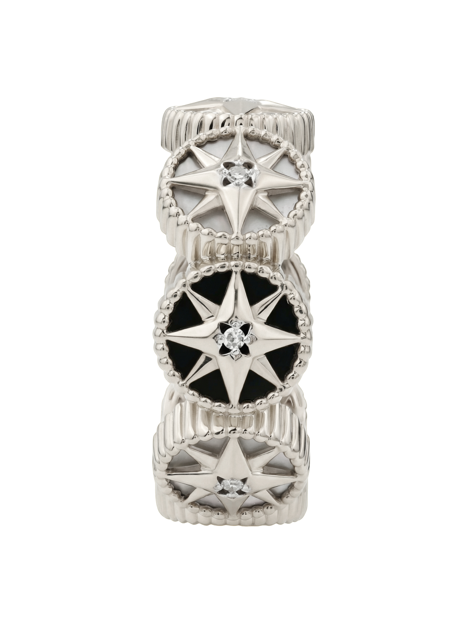 Кольцо из белого золота c бриллиантами, ониксом и перламутром