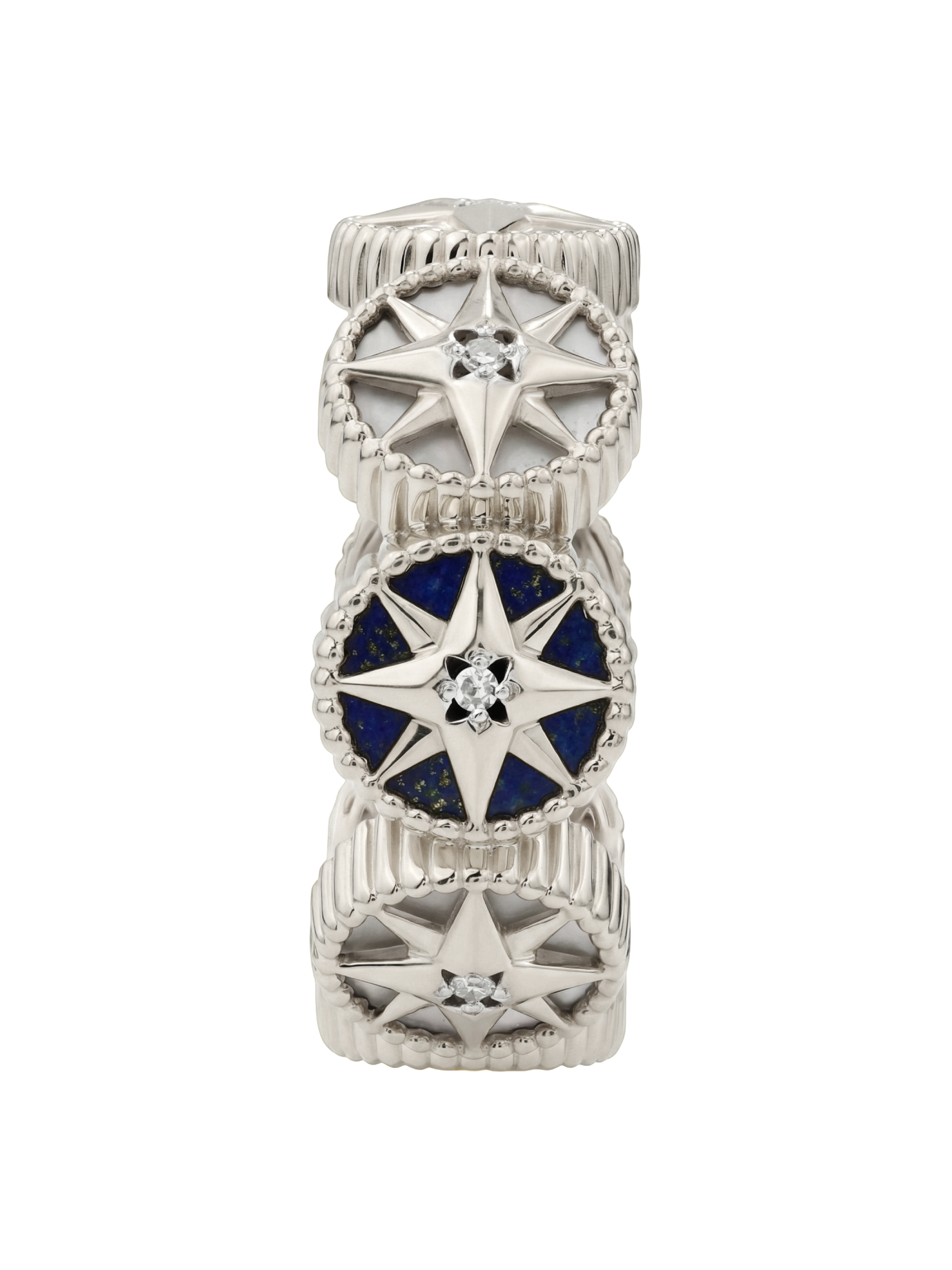 Кольцо из белого золота c бриллиантами, лазуритом и перламутром