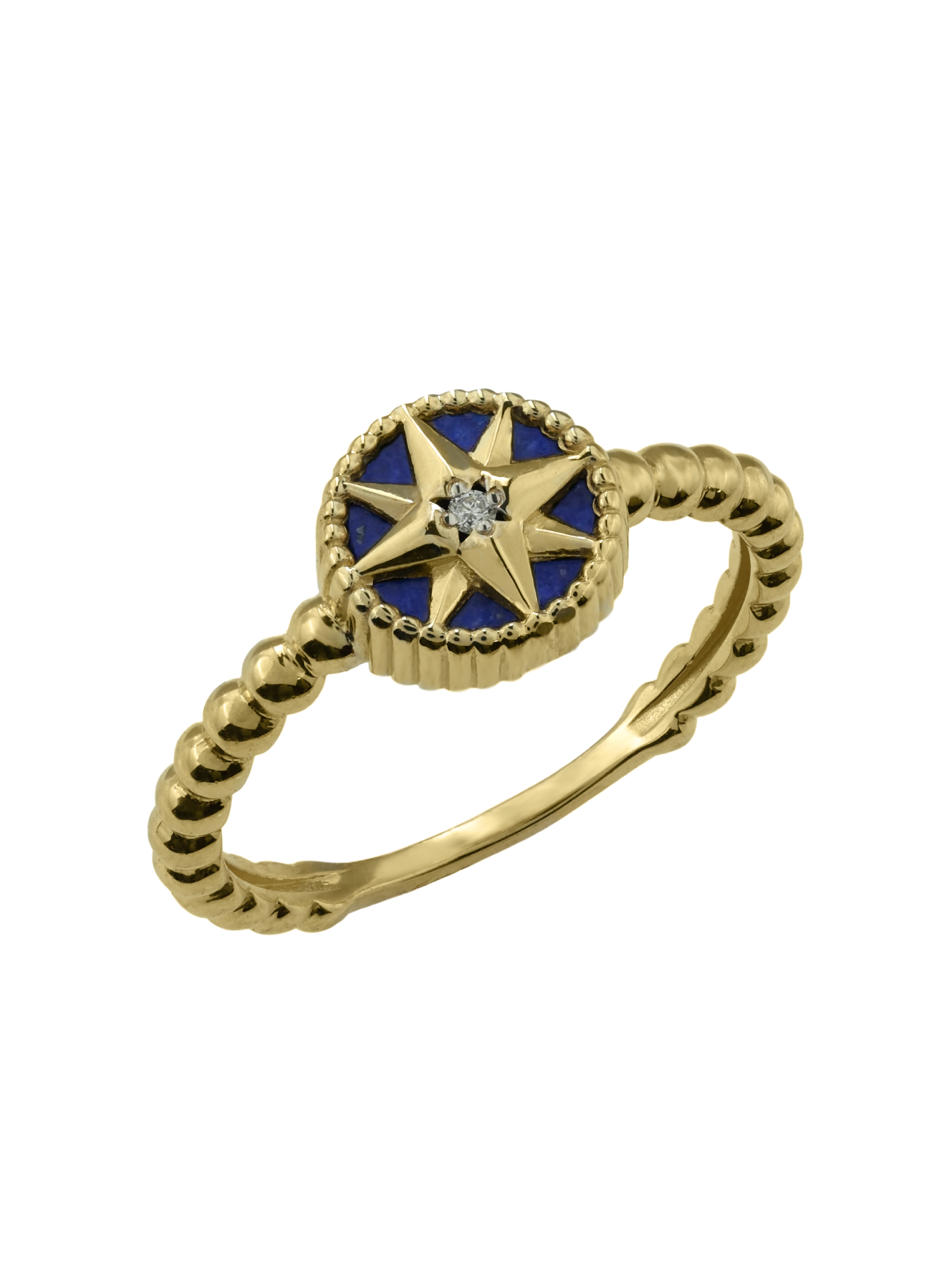 Кольцо из лимонного золота c бриллиантами и лазуритом