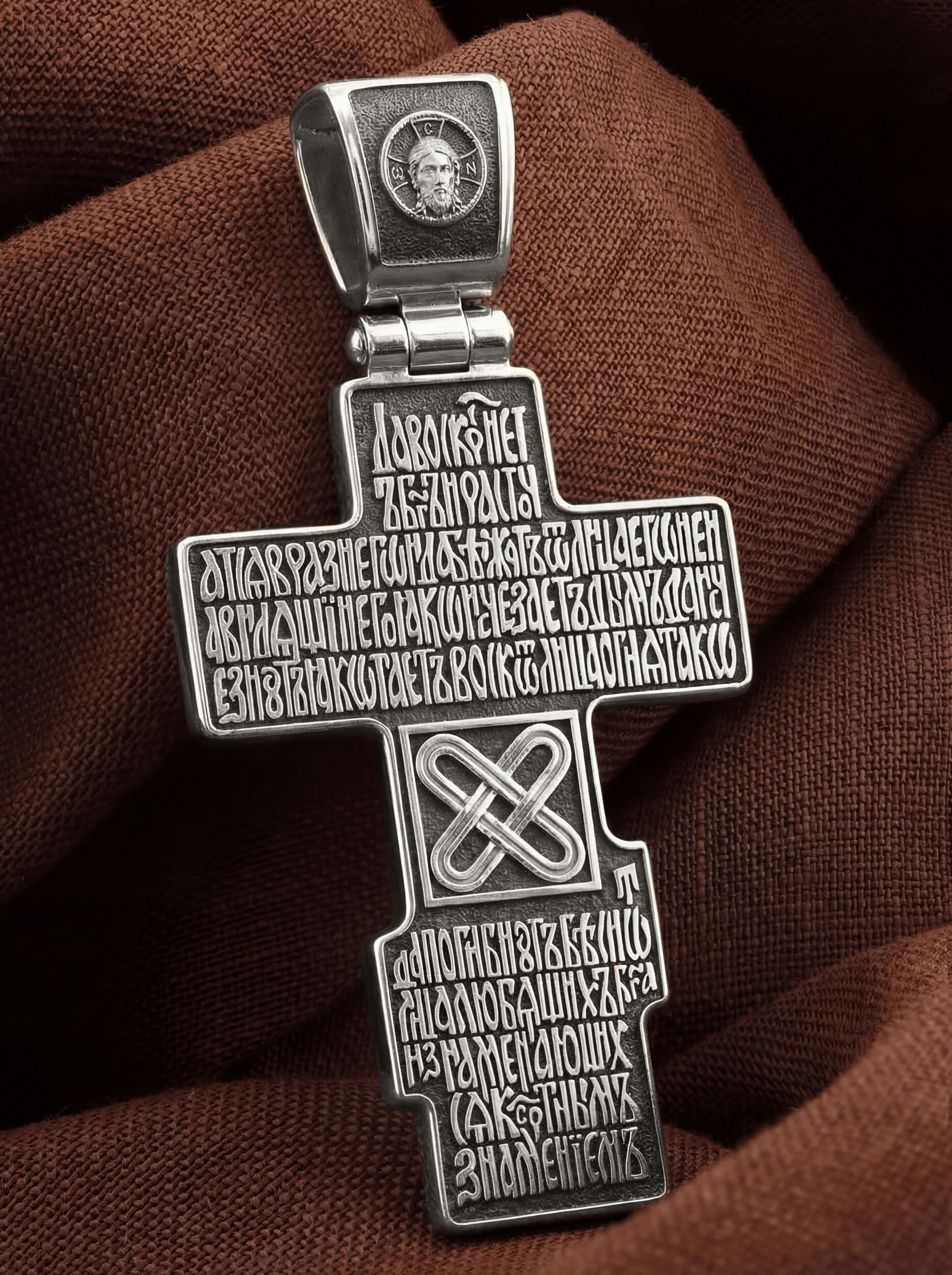 На кулонном кольце изображен Спас Нерукотворный — Символ вочеловечившегося Божества.