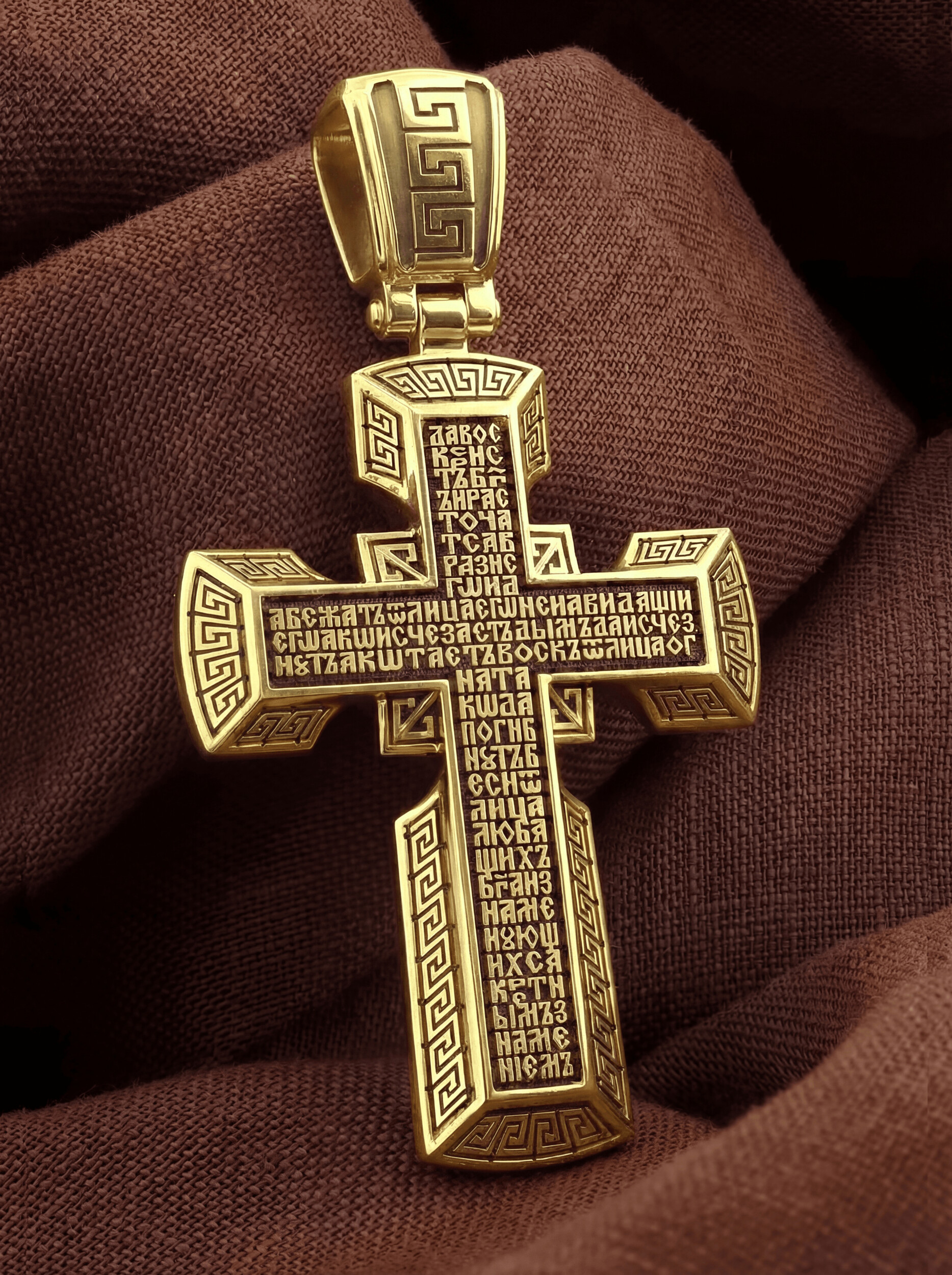 На обороте креста написан начальный стих оградительной молитвы Честному Кресту Господню. Эту молитву читают в опасности, а также носят при себе для защиты от злых сил: «Да воскреснет Бог, и расточатся врази Его, и да бежат от лица Его ненавидящии Его. Яко исчезает дым, да исчезнут; яко тает воск от лица огня, тако да погибнут беси от лица любящих Бога и знаменующихся крестным знамением, и в веселии глаголющих: радуйся, Пречестный и Животворящий Кресте Господень, прогоняй бесы силою на тебе пропятаго Господа нашего Иисуса Христа, во ад сшедшаго и поправшаго силу диаволю, и даровавшаго нам тебе Крест Свой Честный на прогнание всякаго супостата. О, Пречестный и Животворящий Кресте Господень! Помогай ми со Святою Госпожею Девою Богородицею и со всеми святыми во веки. Аминь».