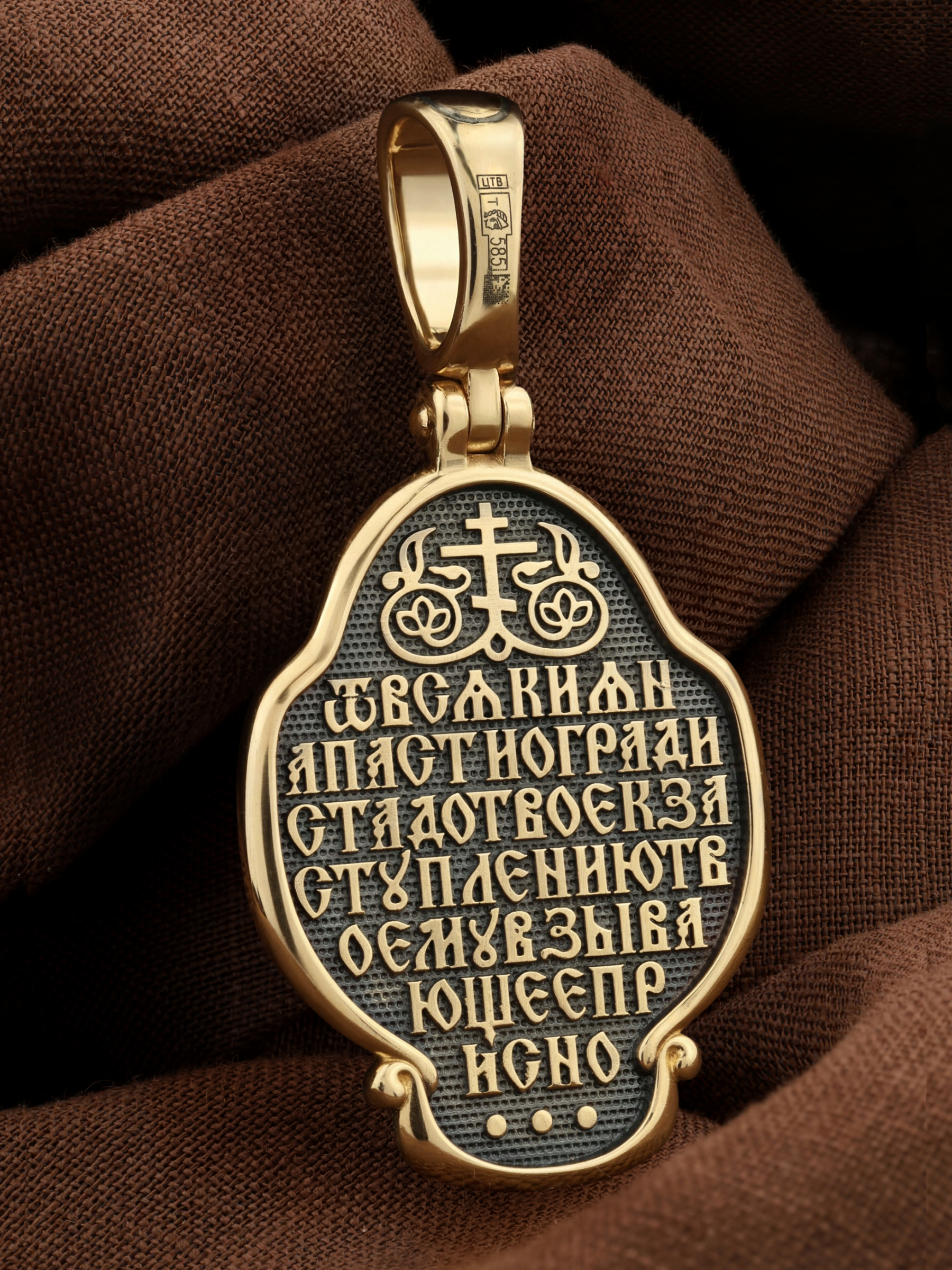 На обороте образка написана молитва Богородице в честь Ее иконы «Всецарица» (Пантанасса): «От всякия напасти огради стадо Твое, к заступлению Твоему взывающее присно».