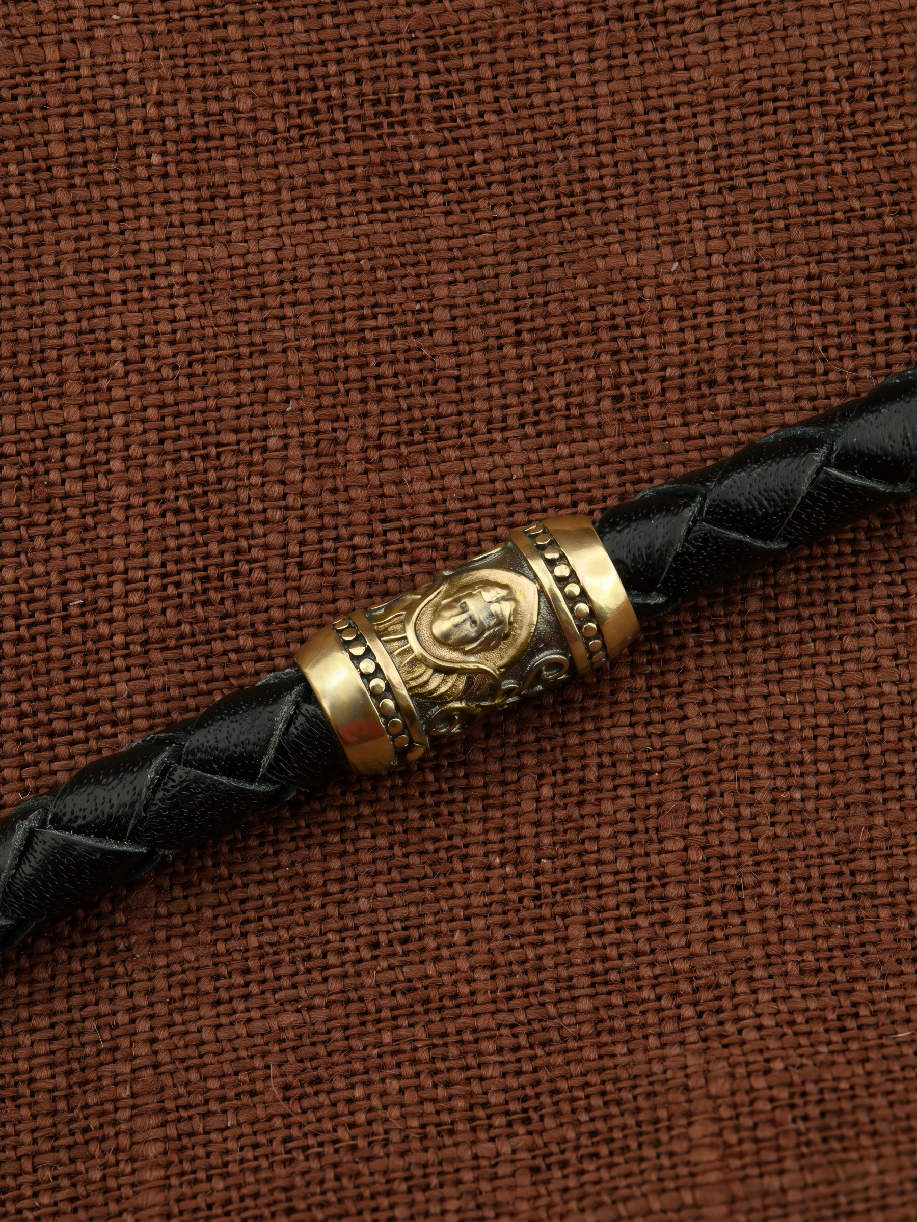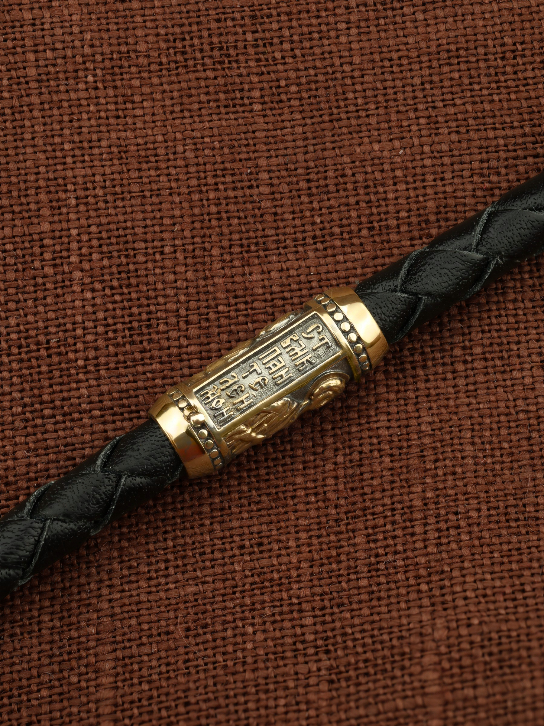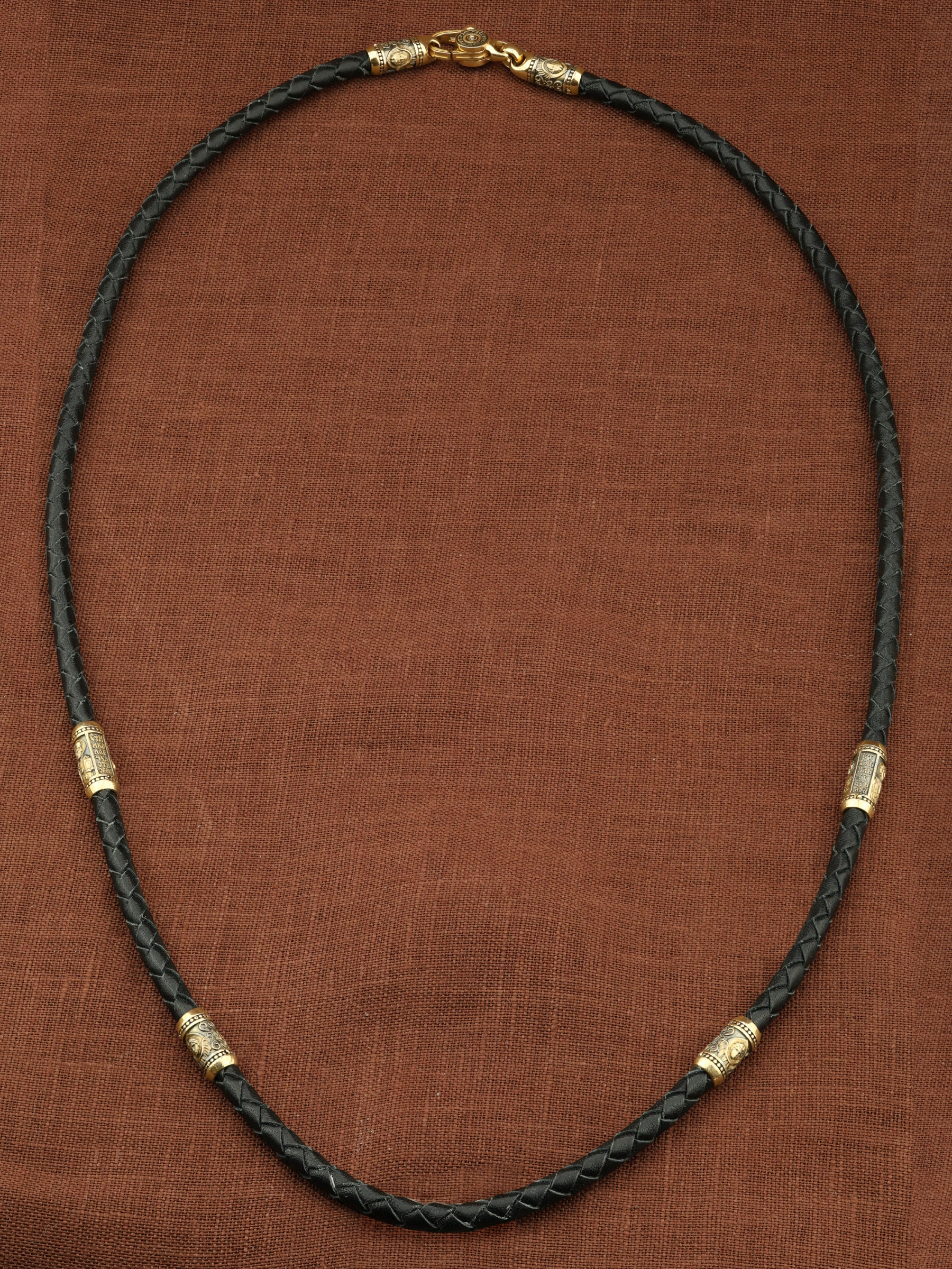 Гайтан из лимонного золота c кожаным шнурком