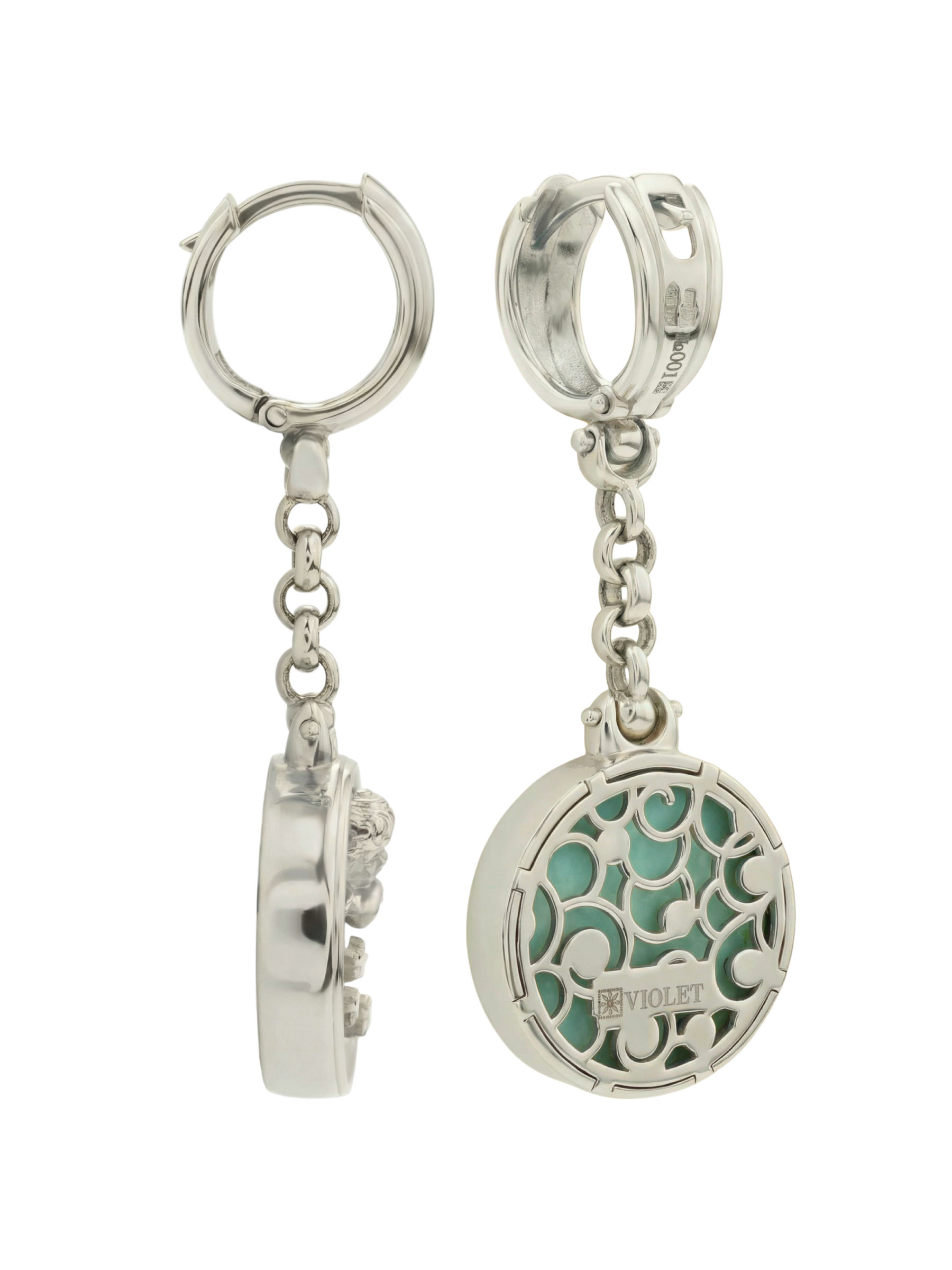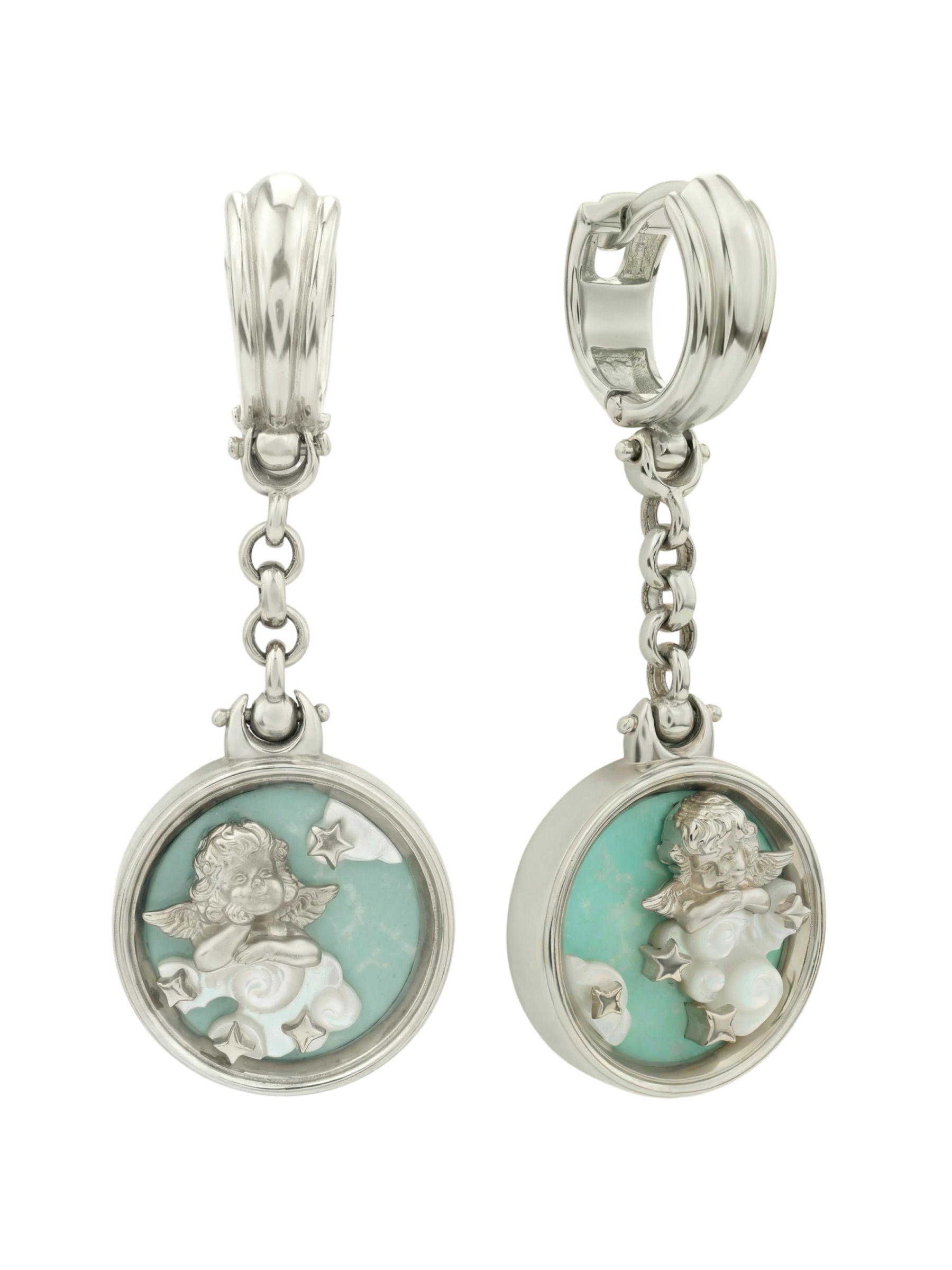 Серьги из белого золота c бирюзой и перламутром