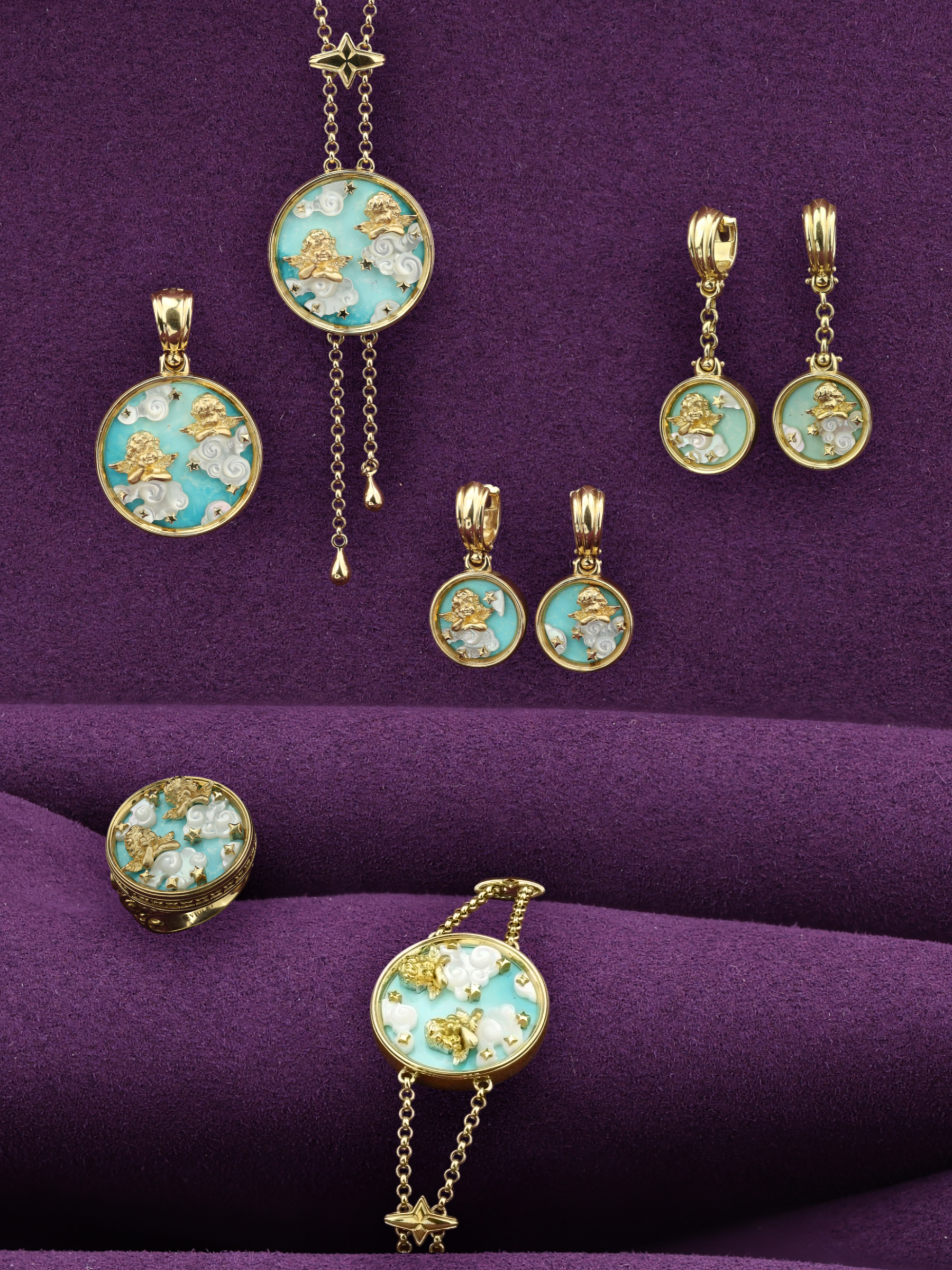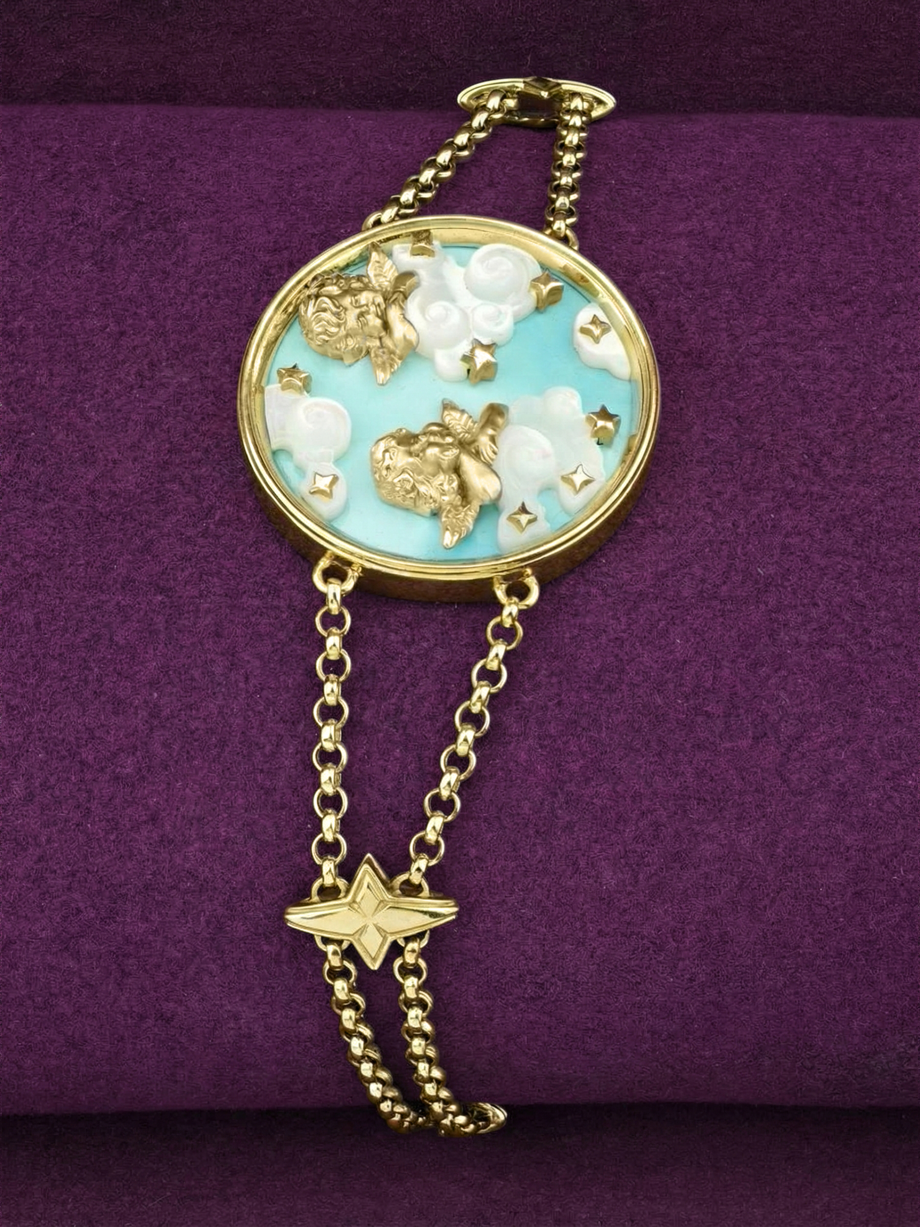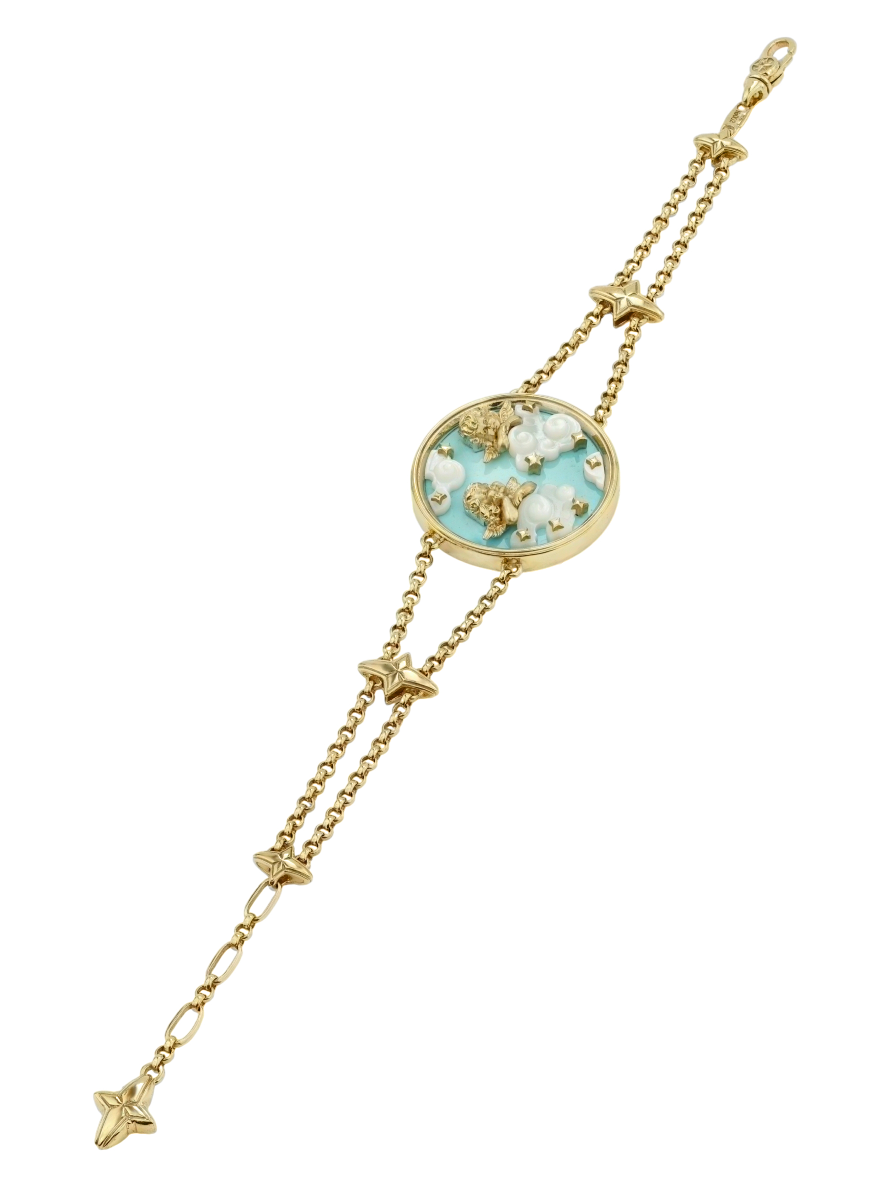 Браслет из лимонного золота c бирюзой и перламутром
