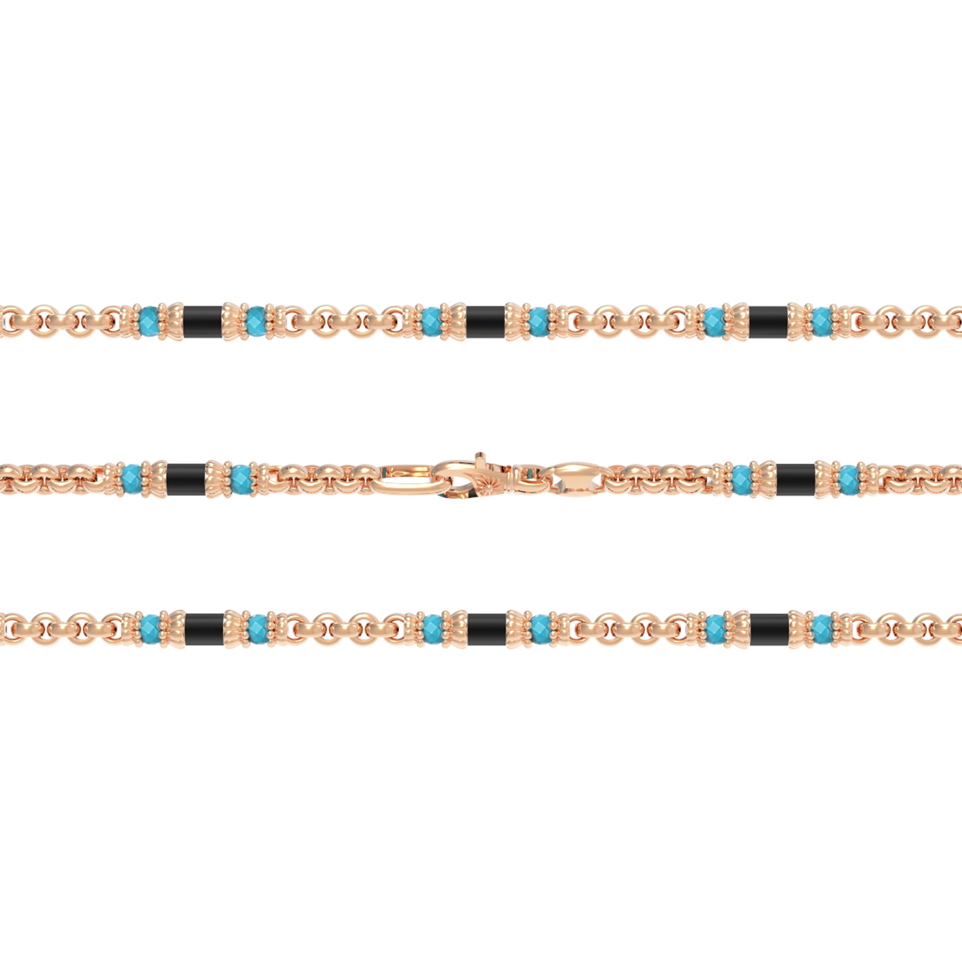 • Цепь из лимонного золота c бирюзой и ониксом