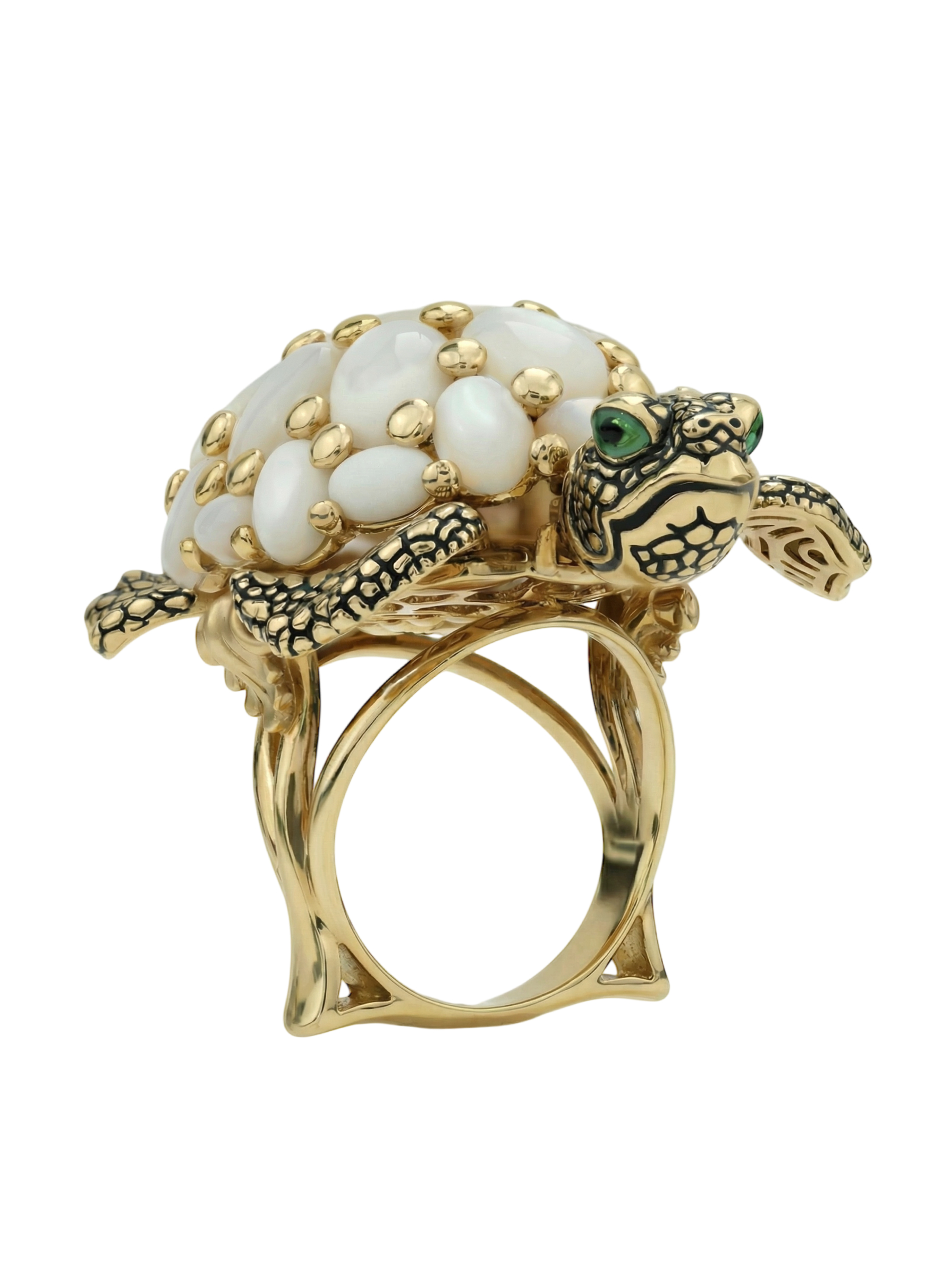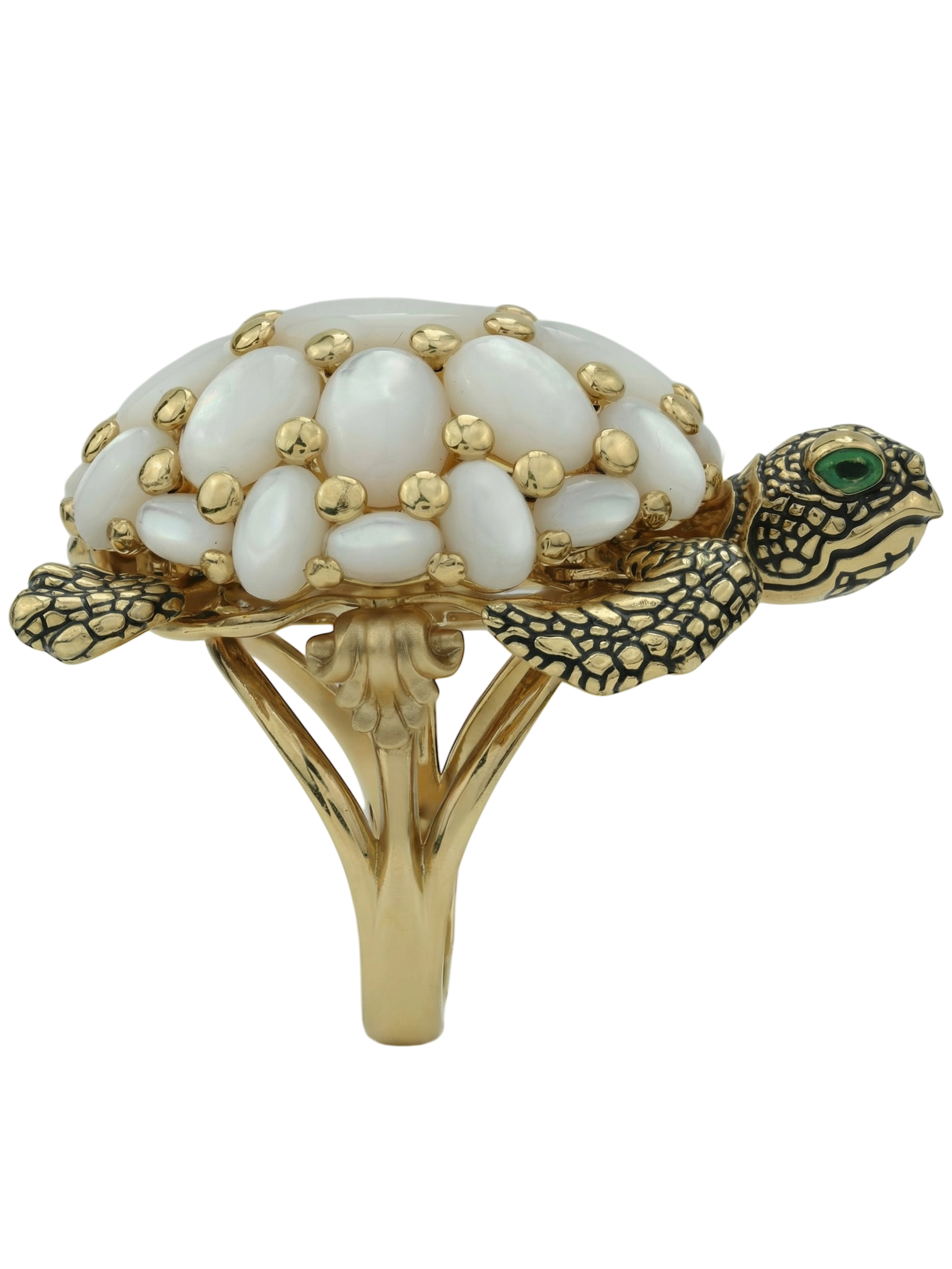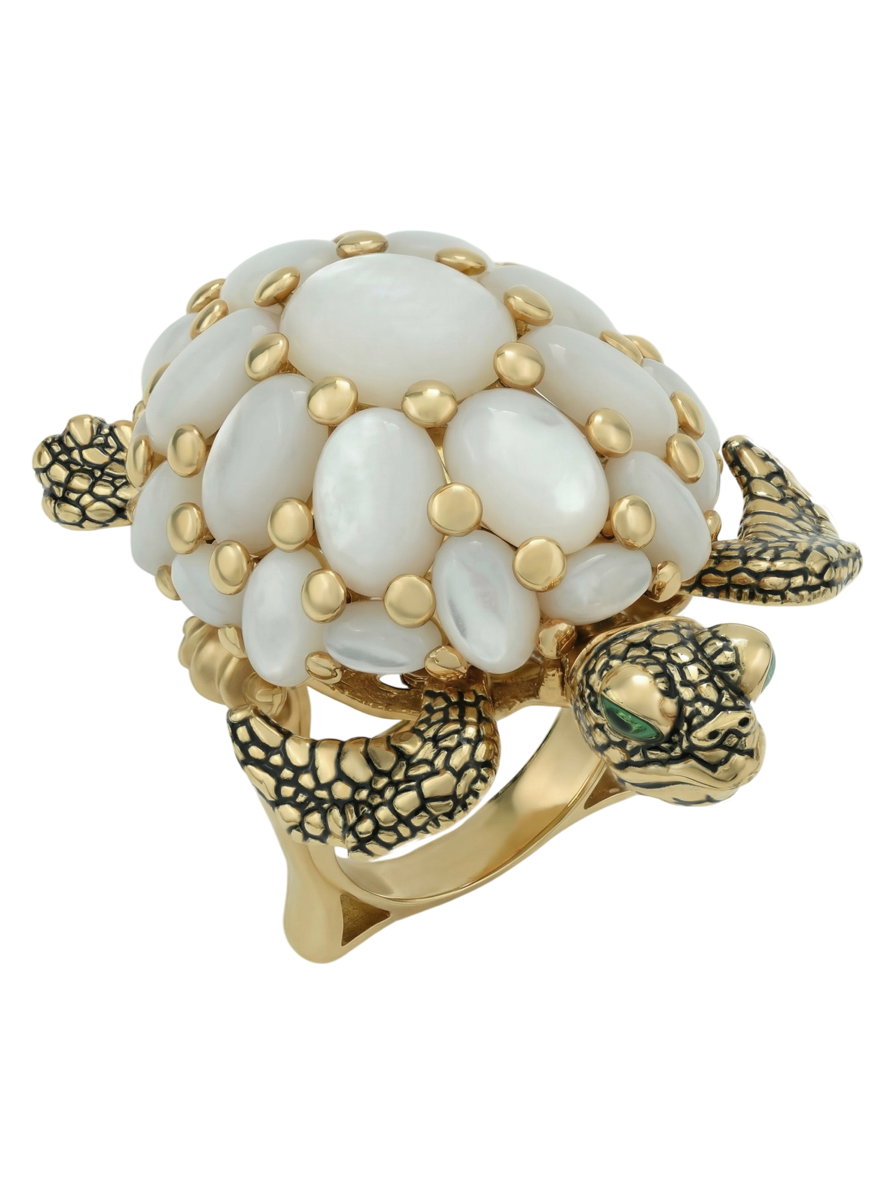 Кольцо из лимонного золота c эмаль и перламутром
