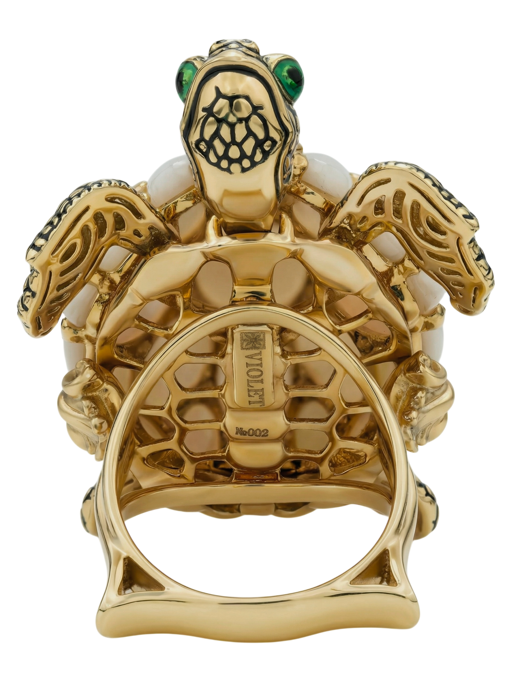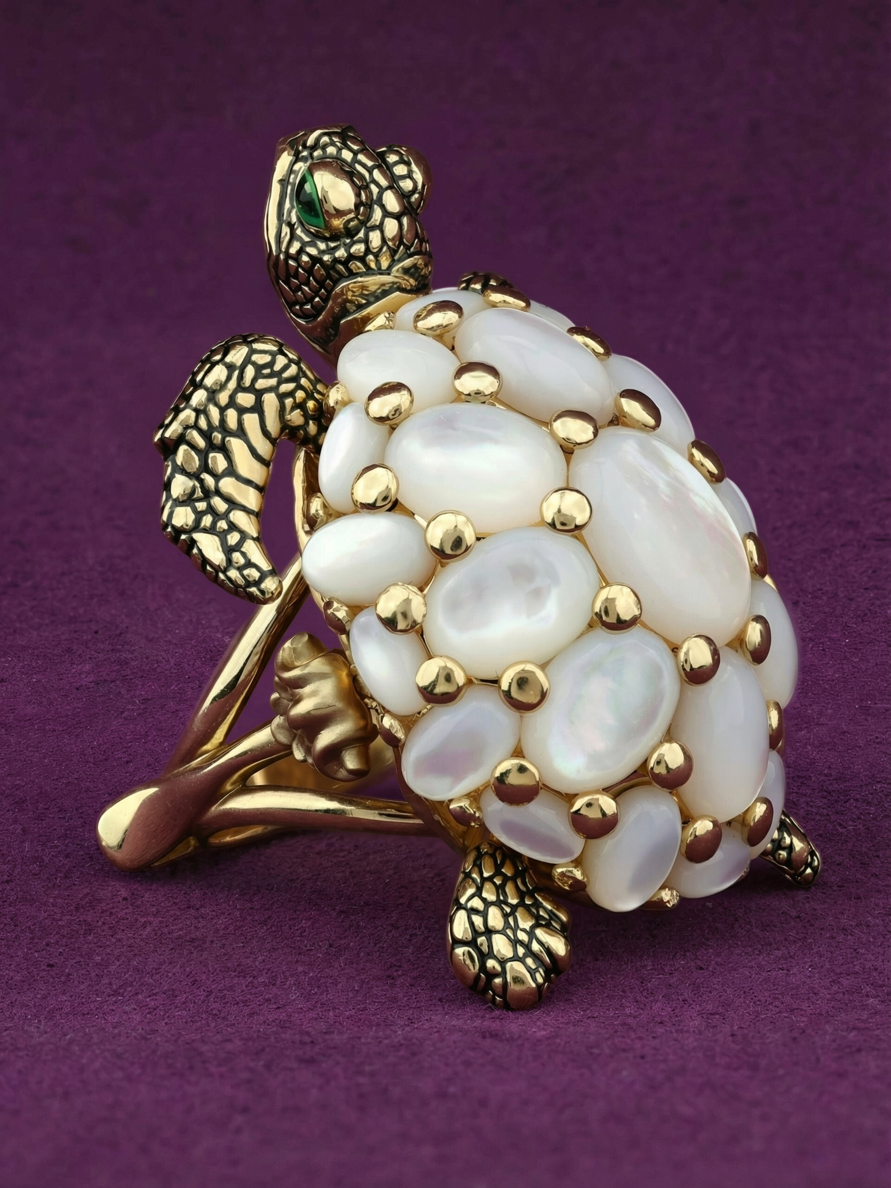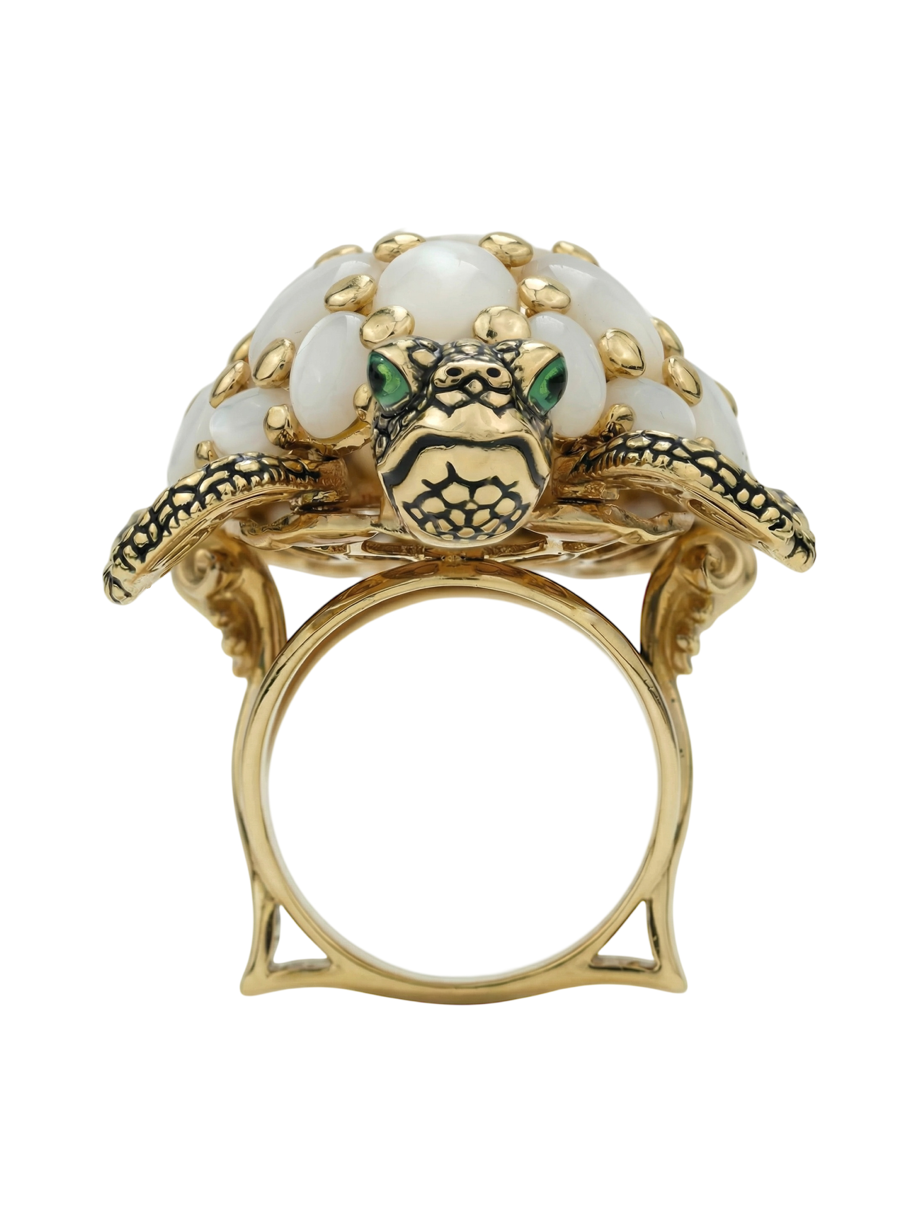 Кольцо из лимонного золота c эмаль и перламутром