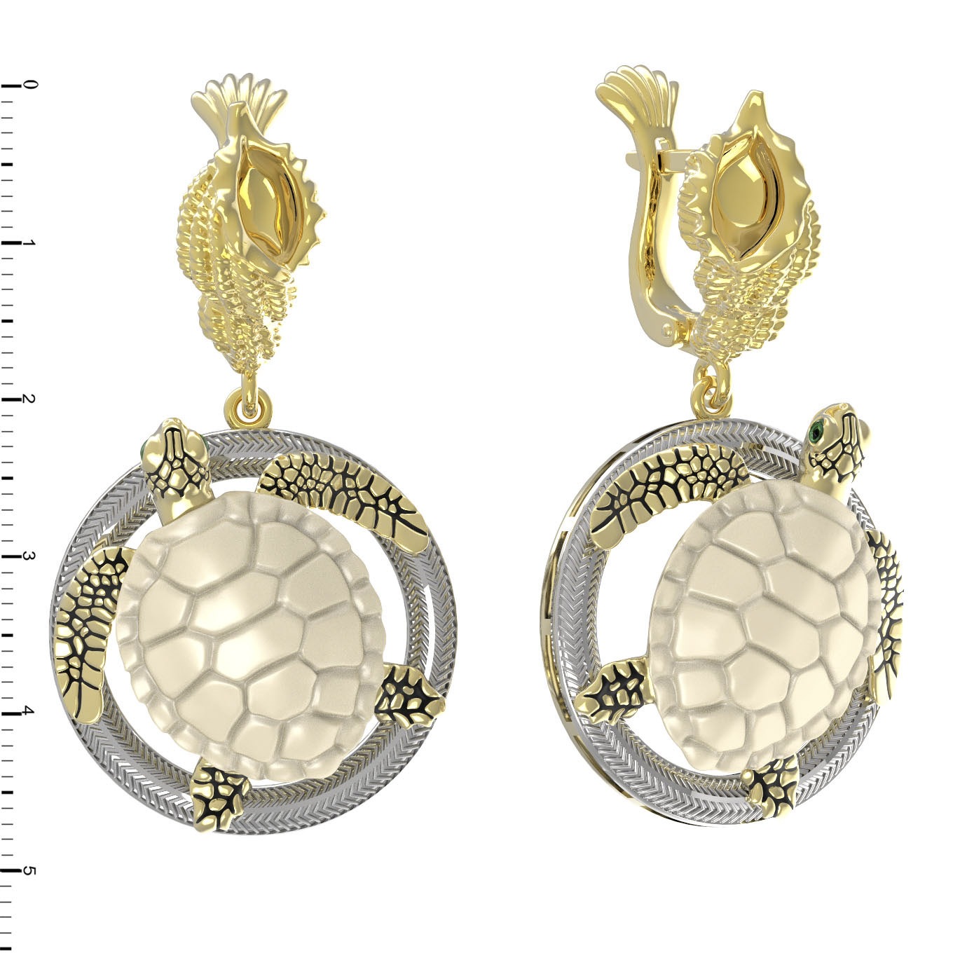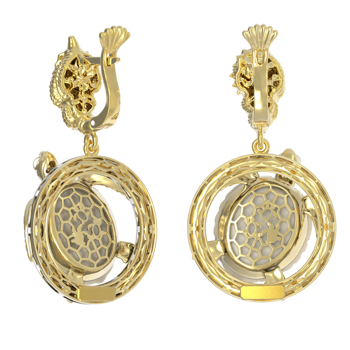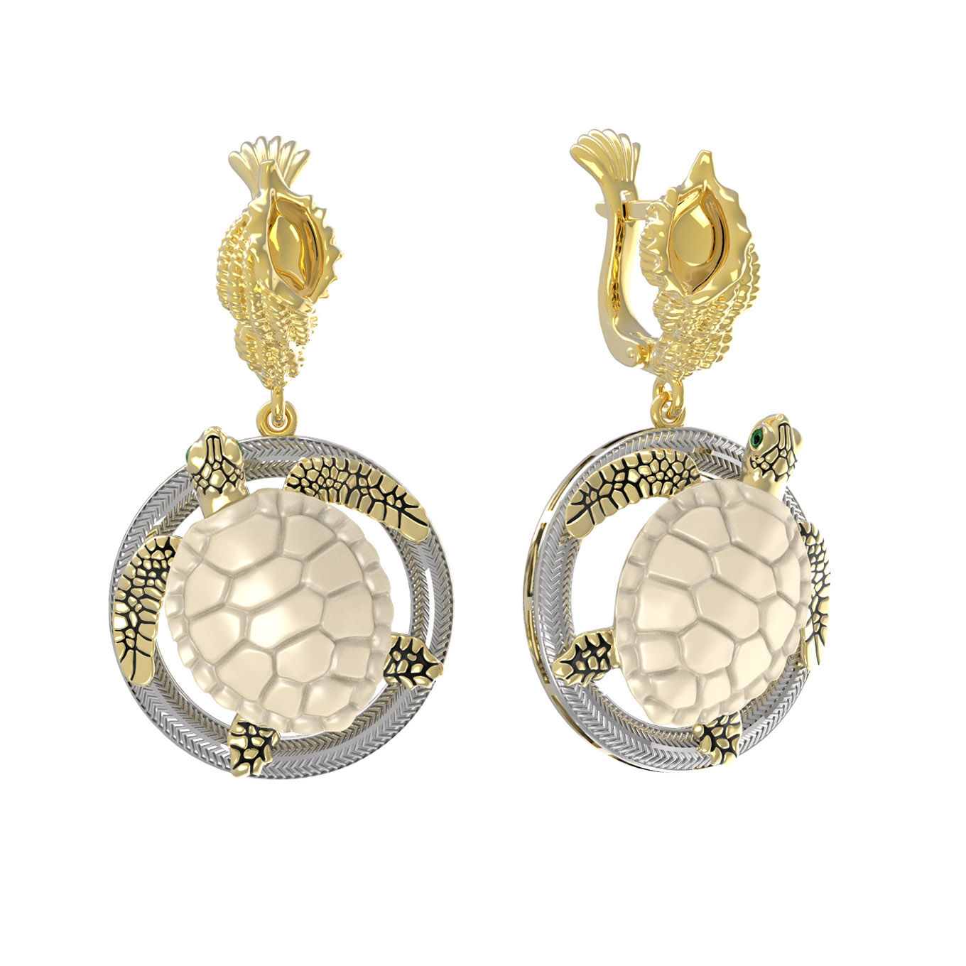 Серьги из лимонного золота c эмаль и бивнем мамонта