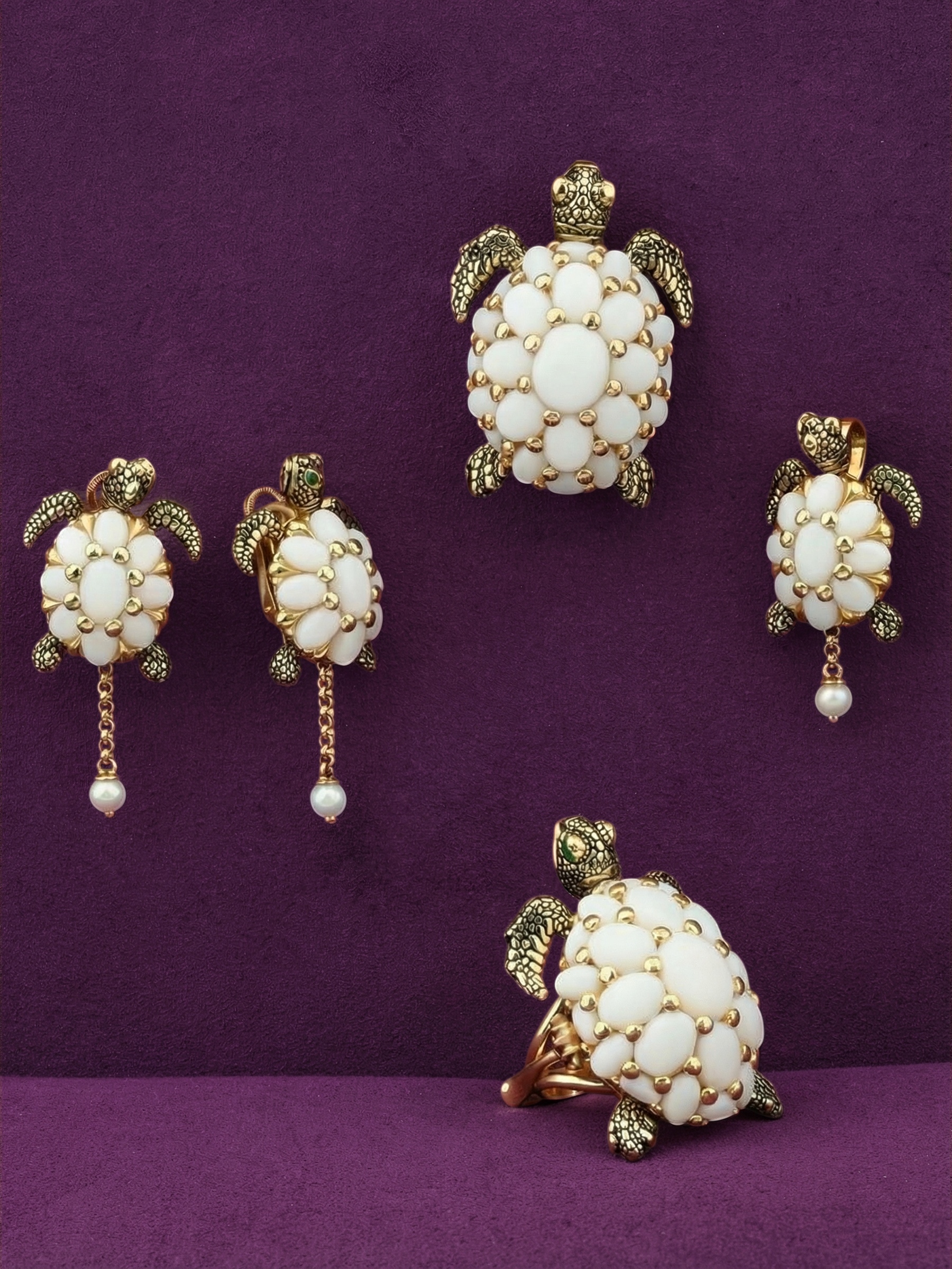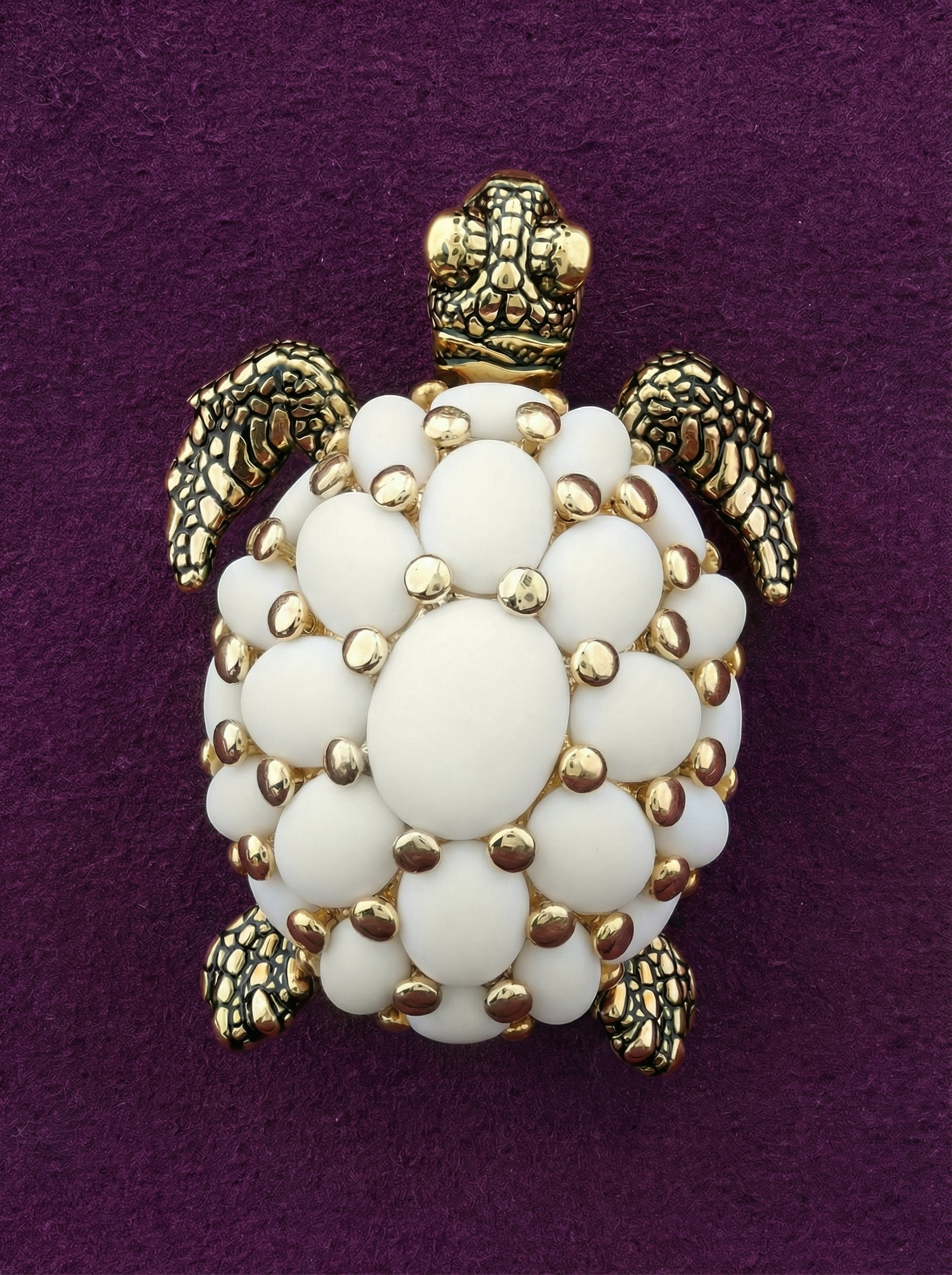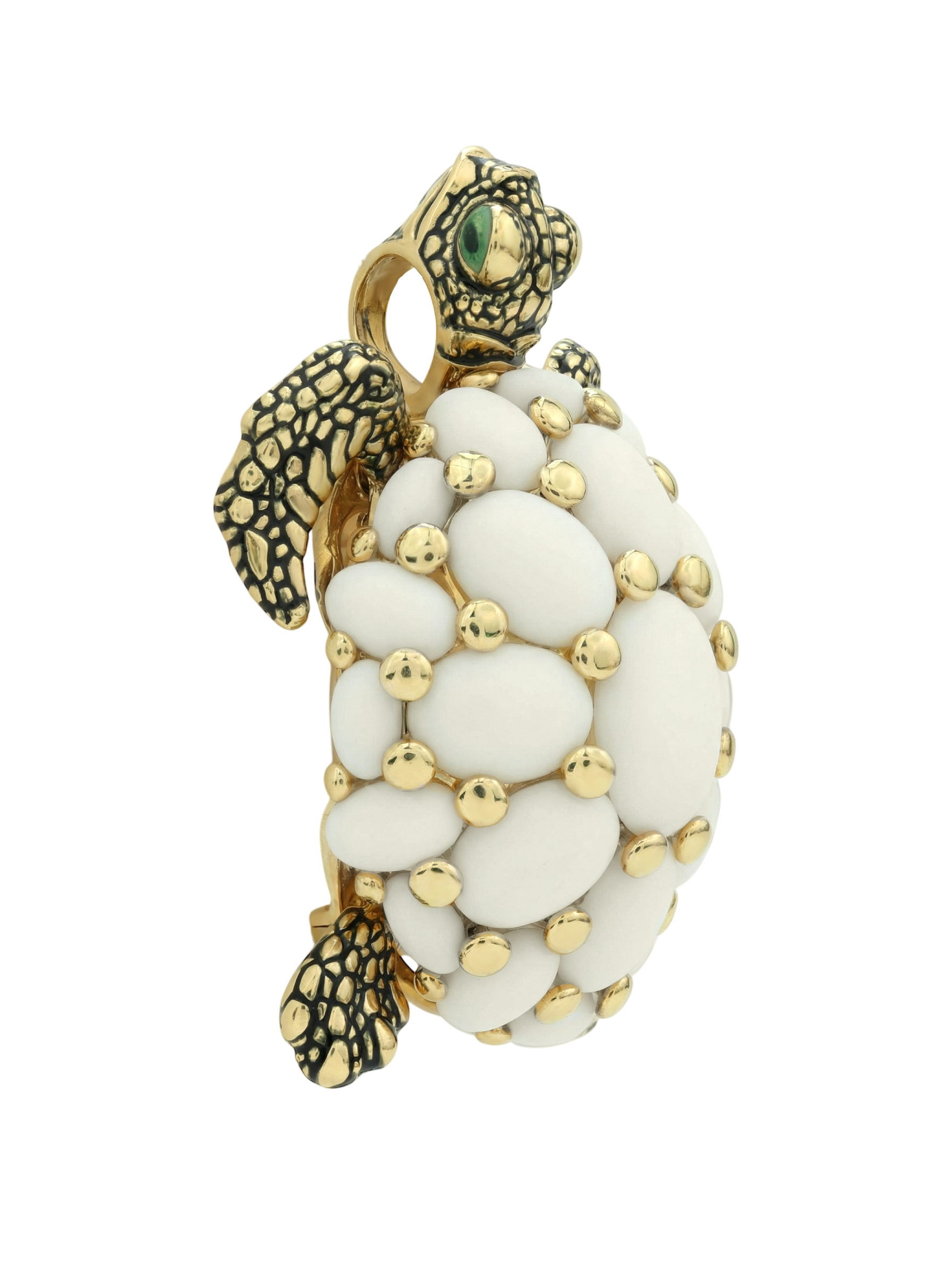 Брошь из лимонного золота c эмаль и бивнем мамонта