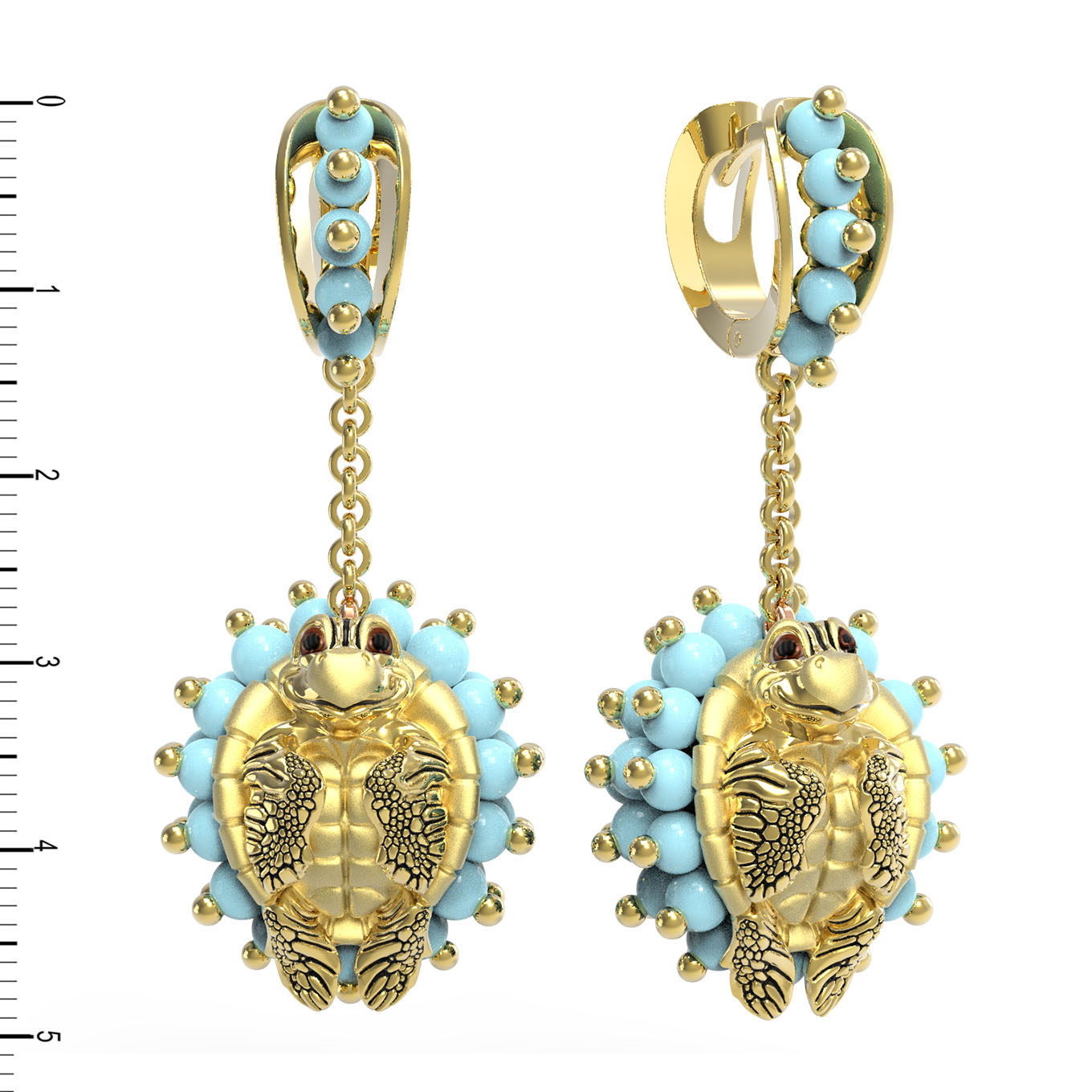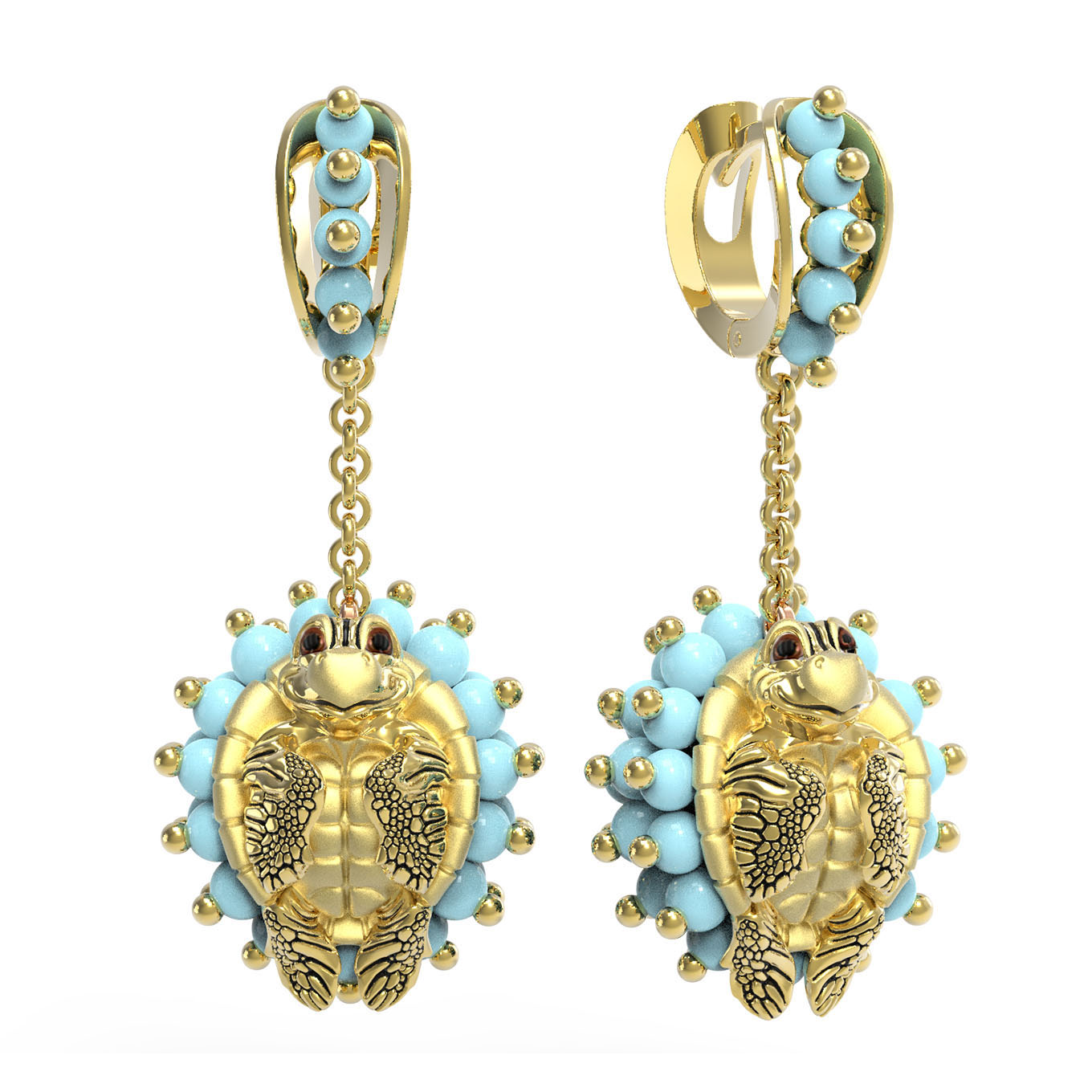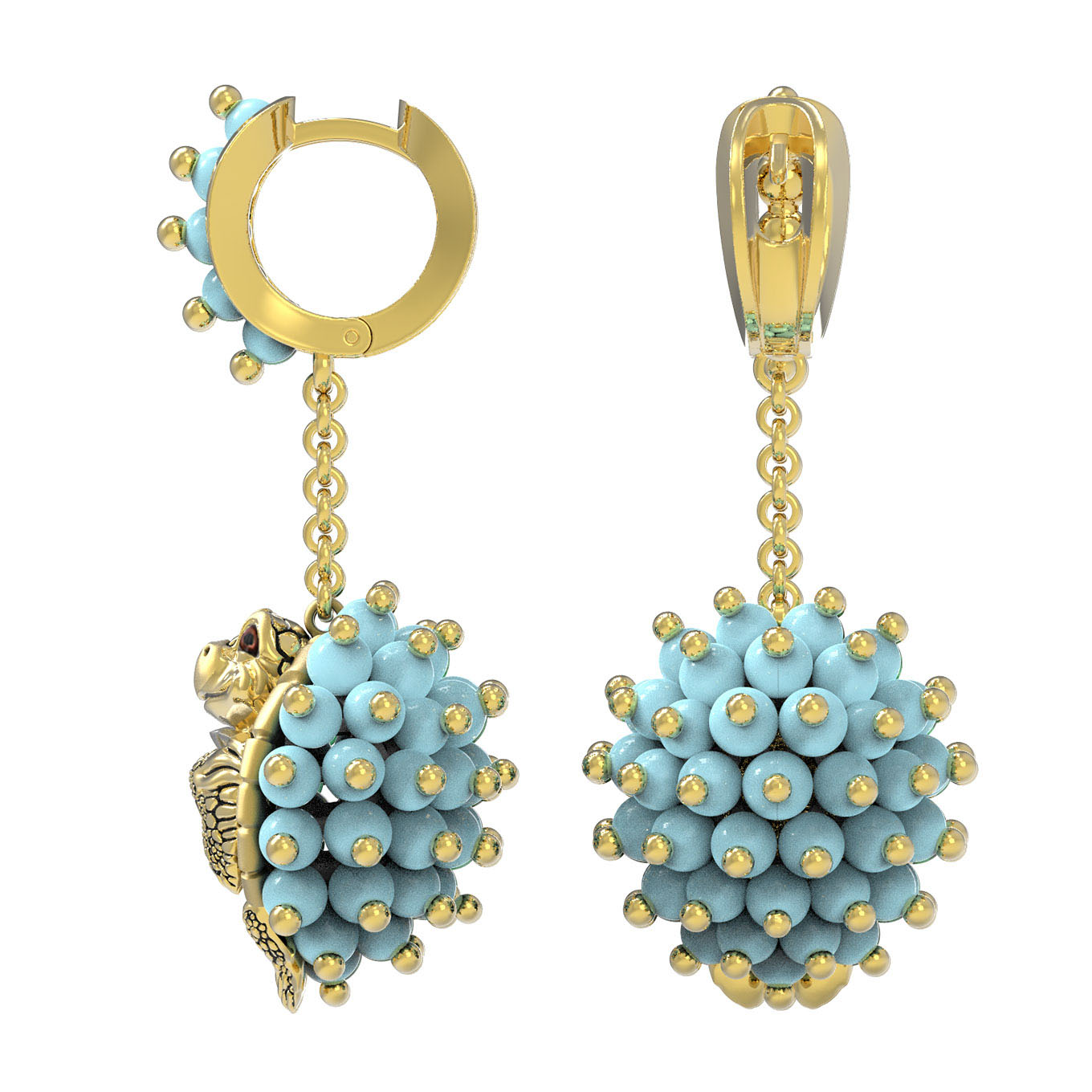 Серьги из лимонного золота c эмаль и бирюзой
