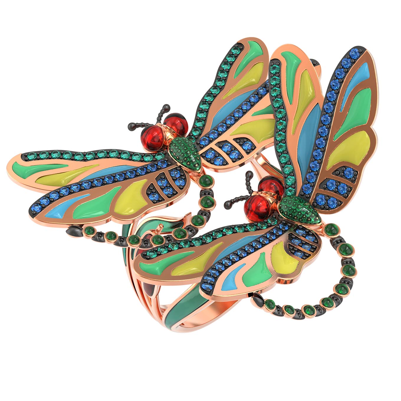 Кольцо из золота c сапфиром, изумрудом и эмалью