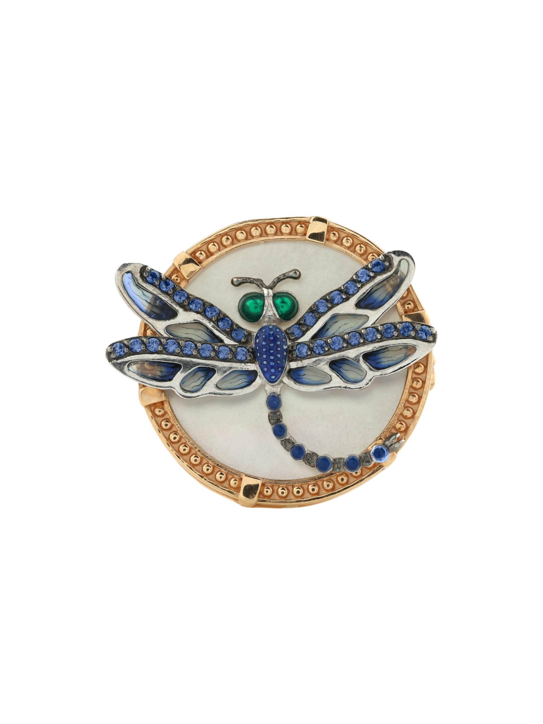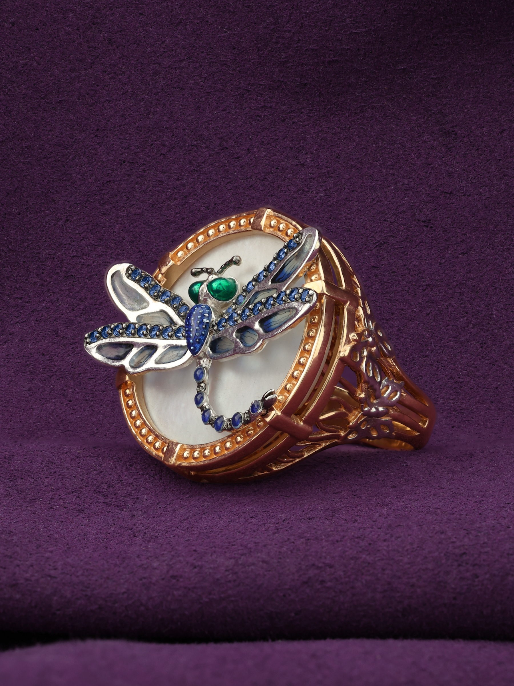 Кольцо из золота c сапфиром, эмалью и перламутром