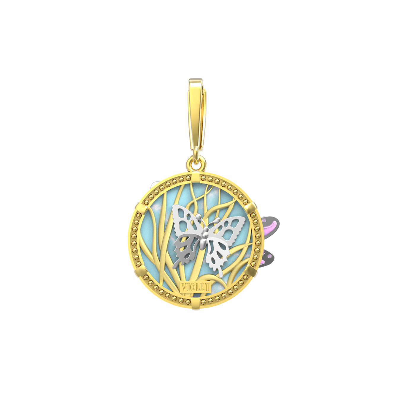 Подвеска из лимонного золота c бирюзой, аметистом и эмалью