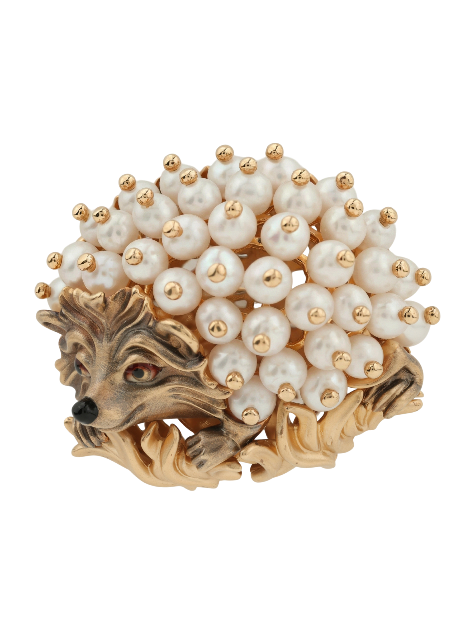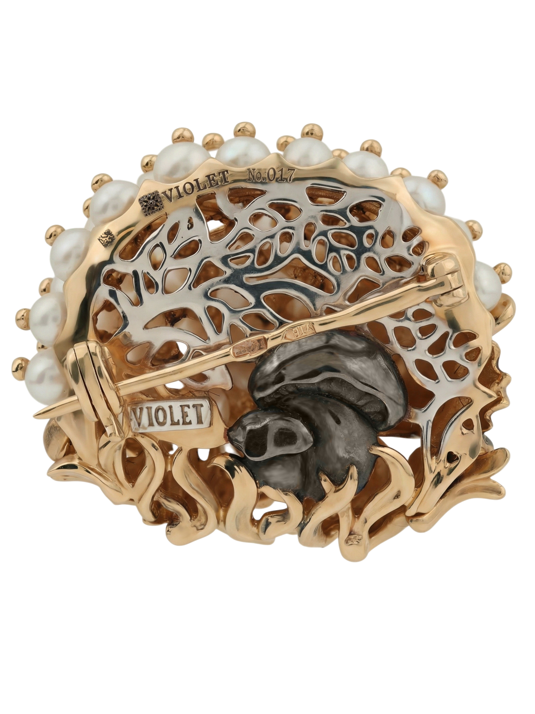 Брошь из золота c эмалью и жемчугом