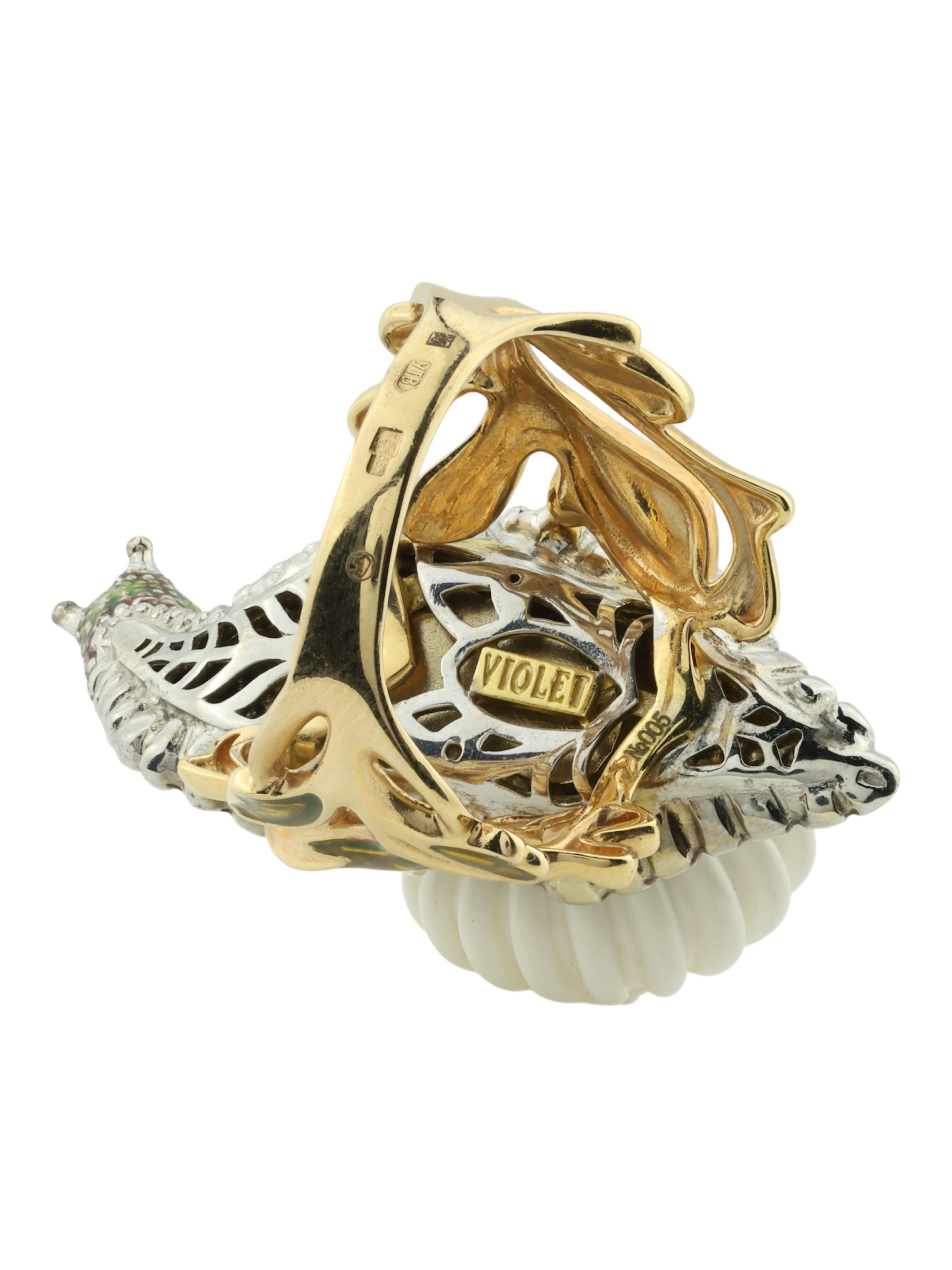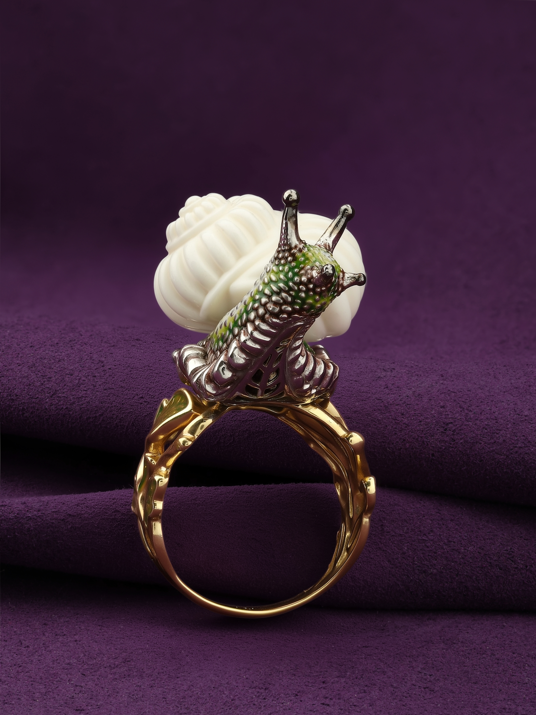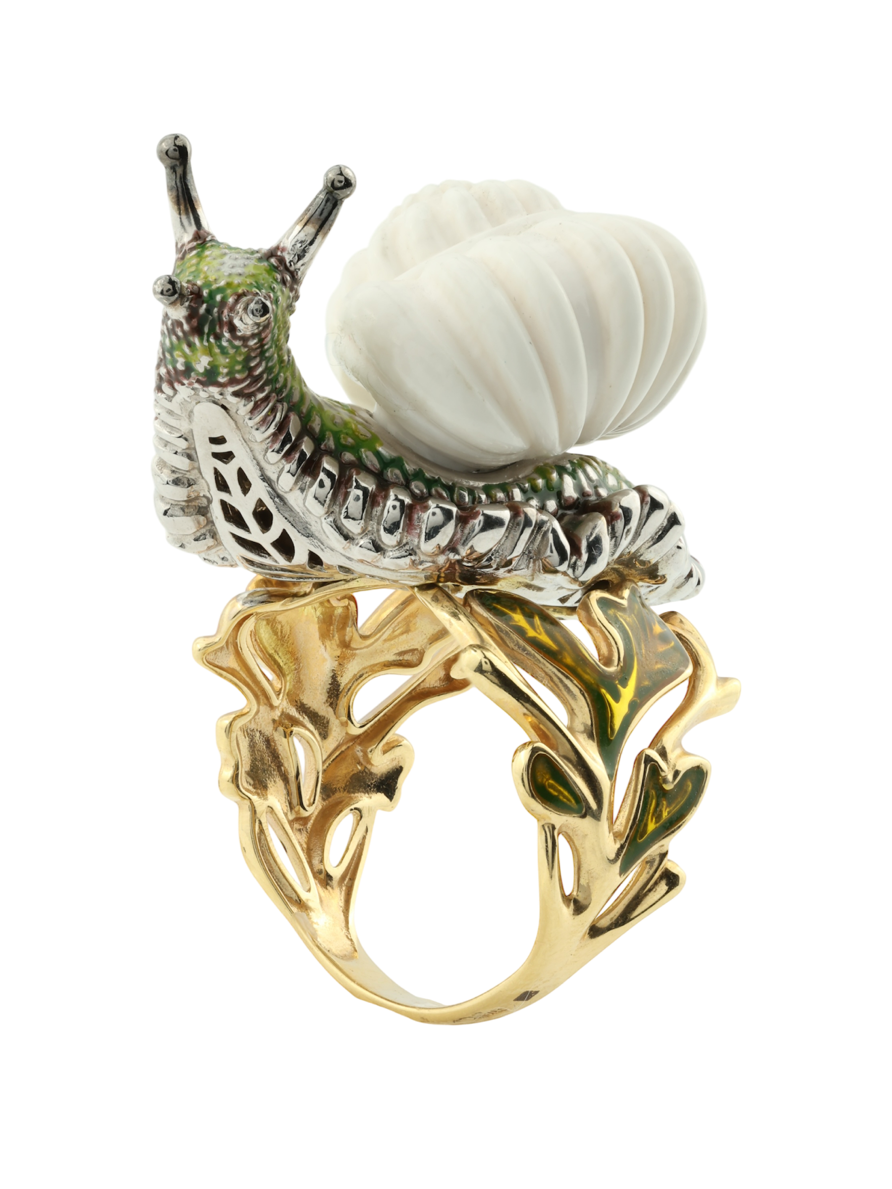 Кольцо из лимонного золота c эмаль и бивнем мамонта