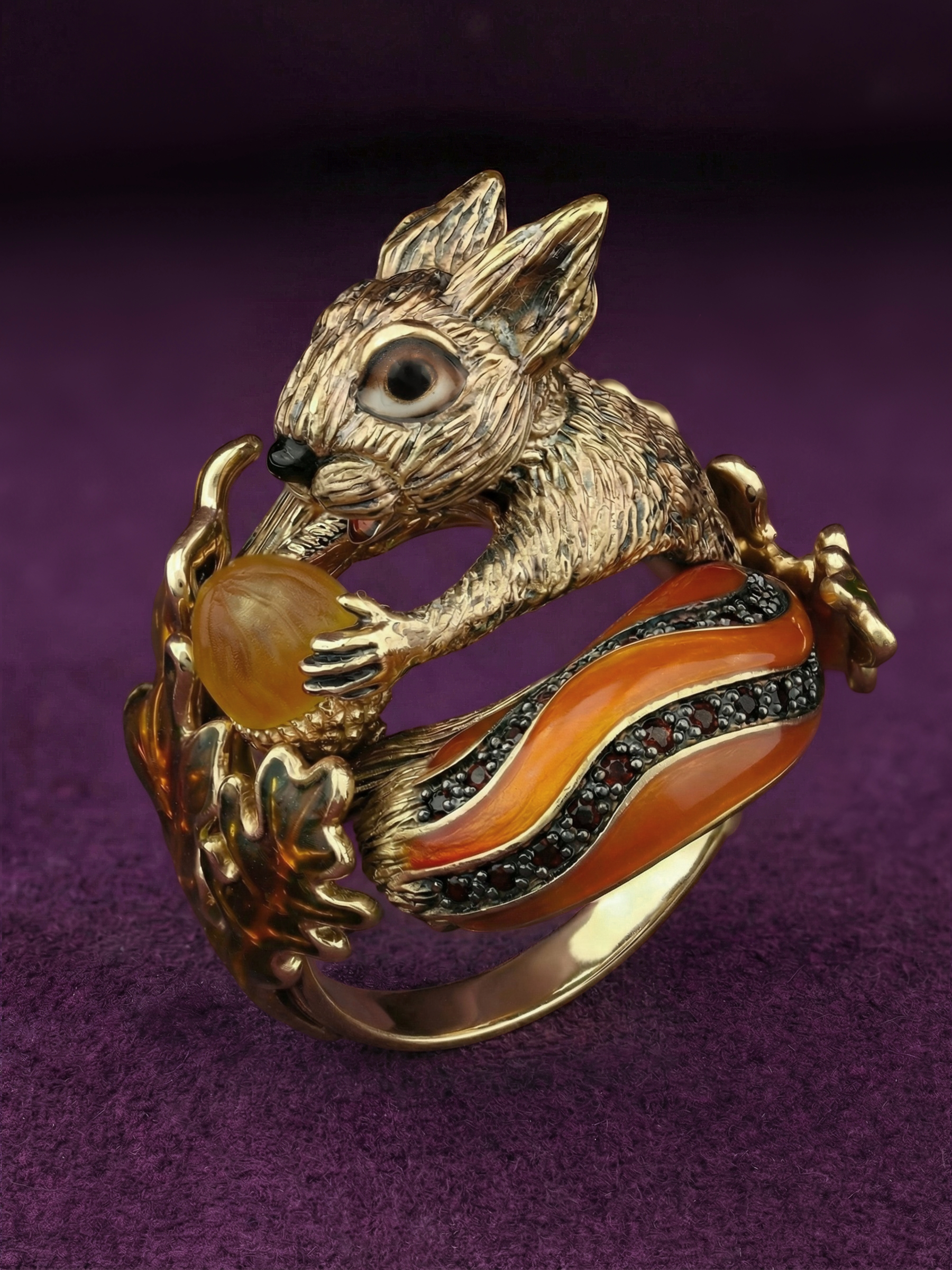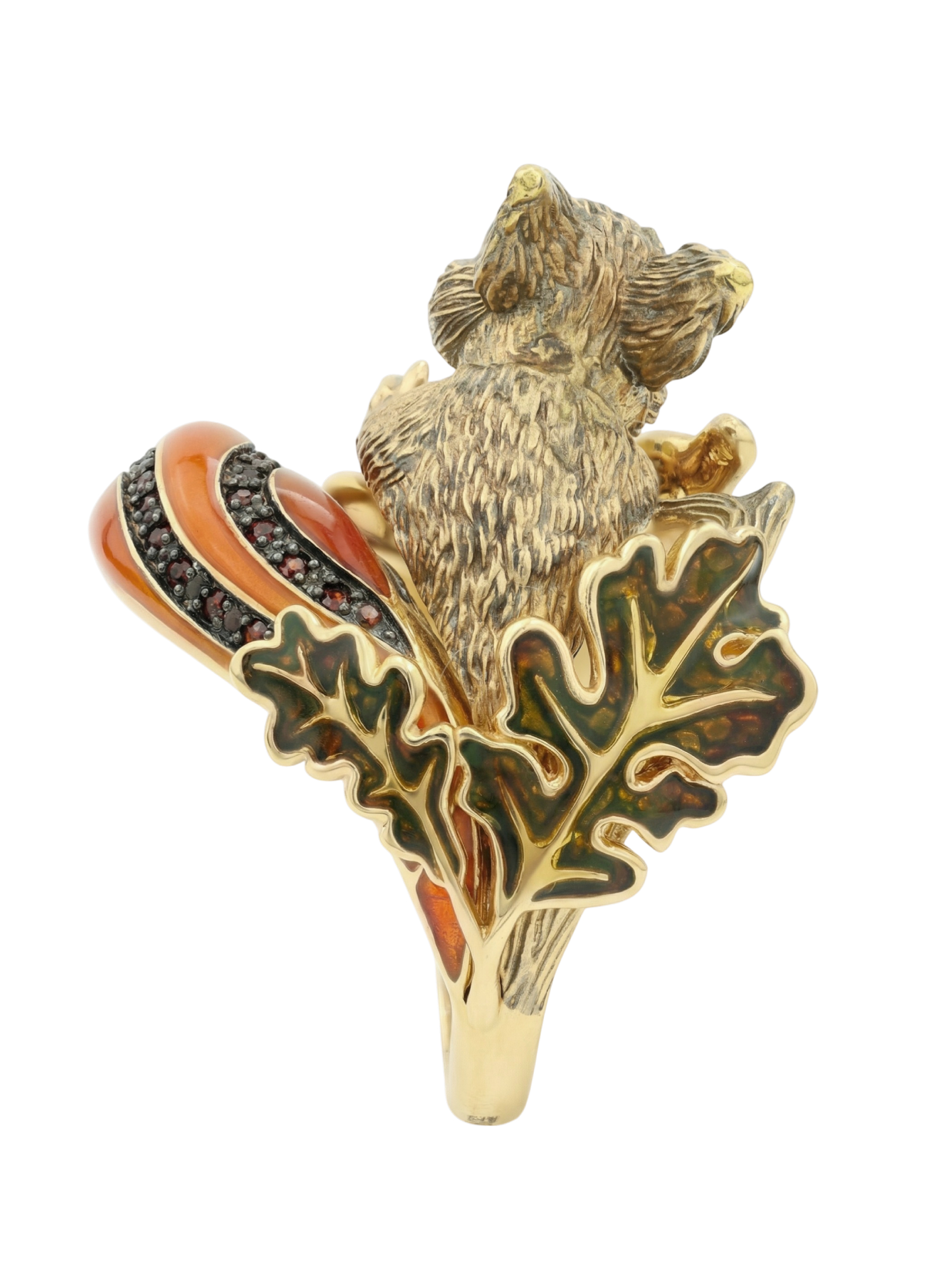 Кольцо из лимонного золота c эмаль , гранатом и янтарём
