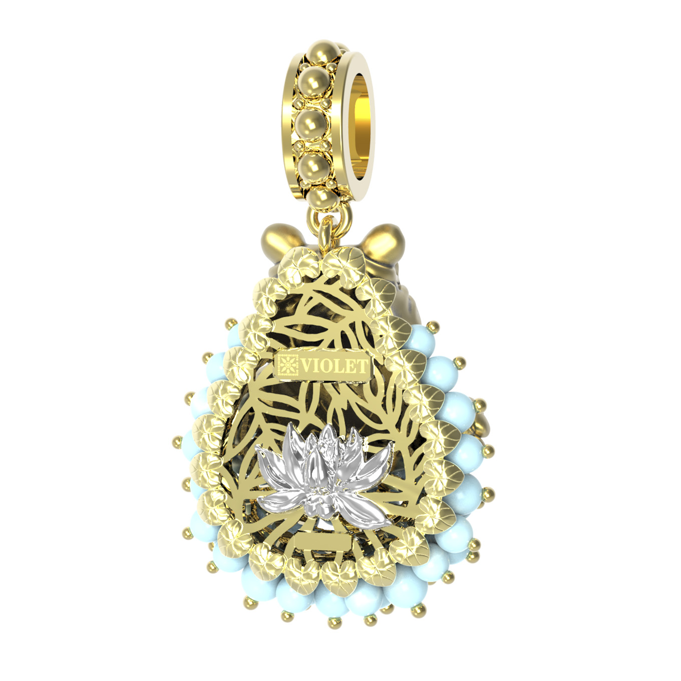 Подвеска из лимонного золота c эмалью и бирюзой