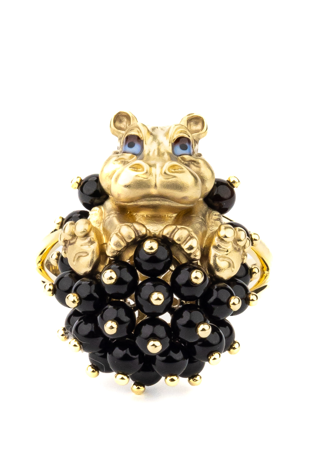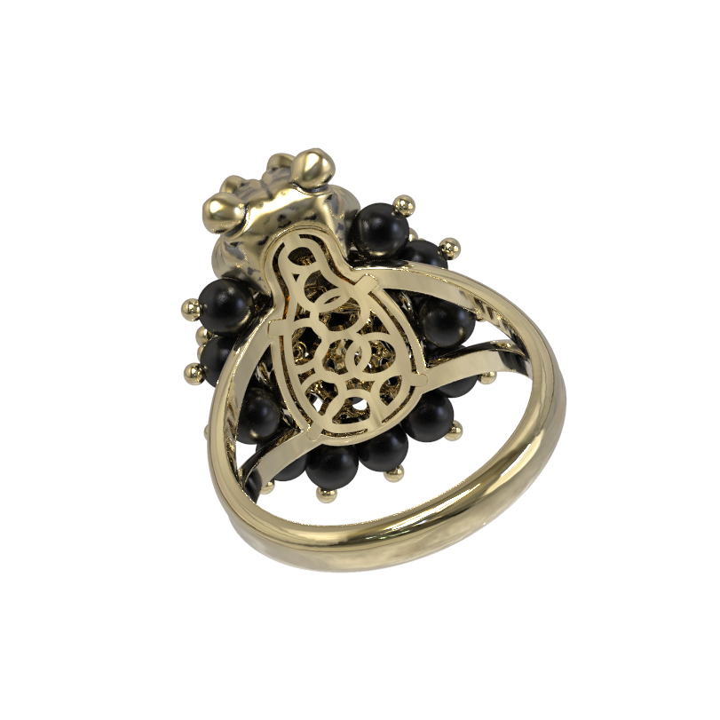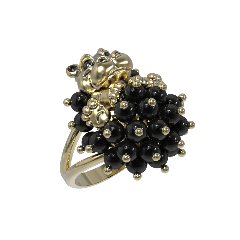 Кольцо из лимонного золота c эмаль и ониксом