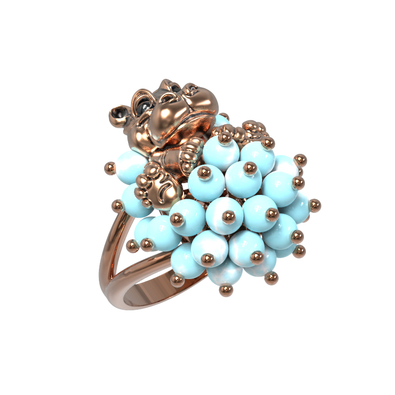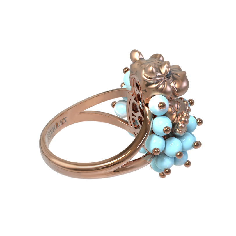 Кольцо из золота c эмалью и бирюзой