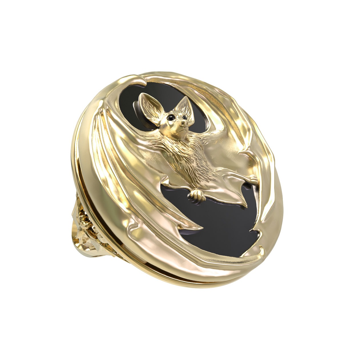 Кольцо из лимонного золота c эмалью и ониксом