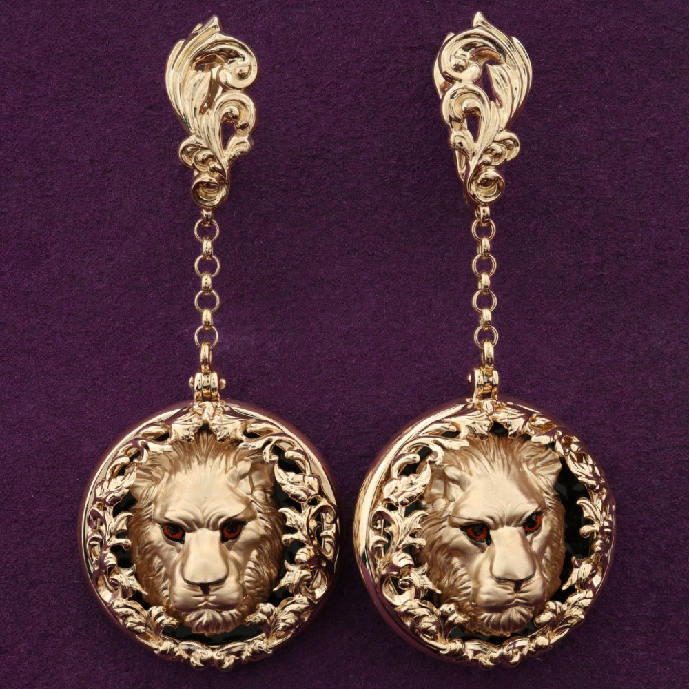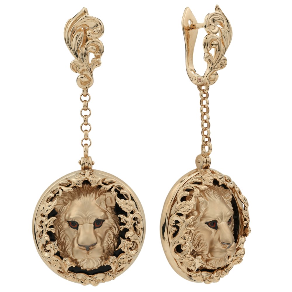 Серьги из золота c эмаль и ониксом