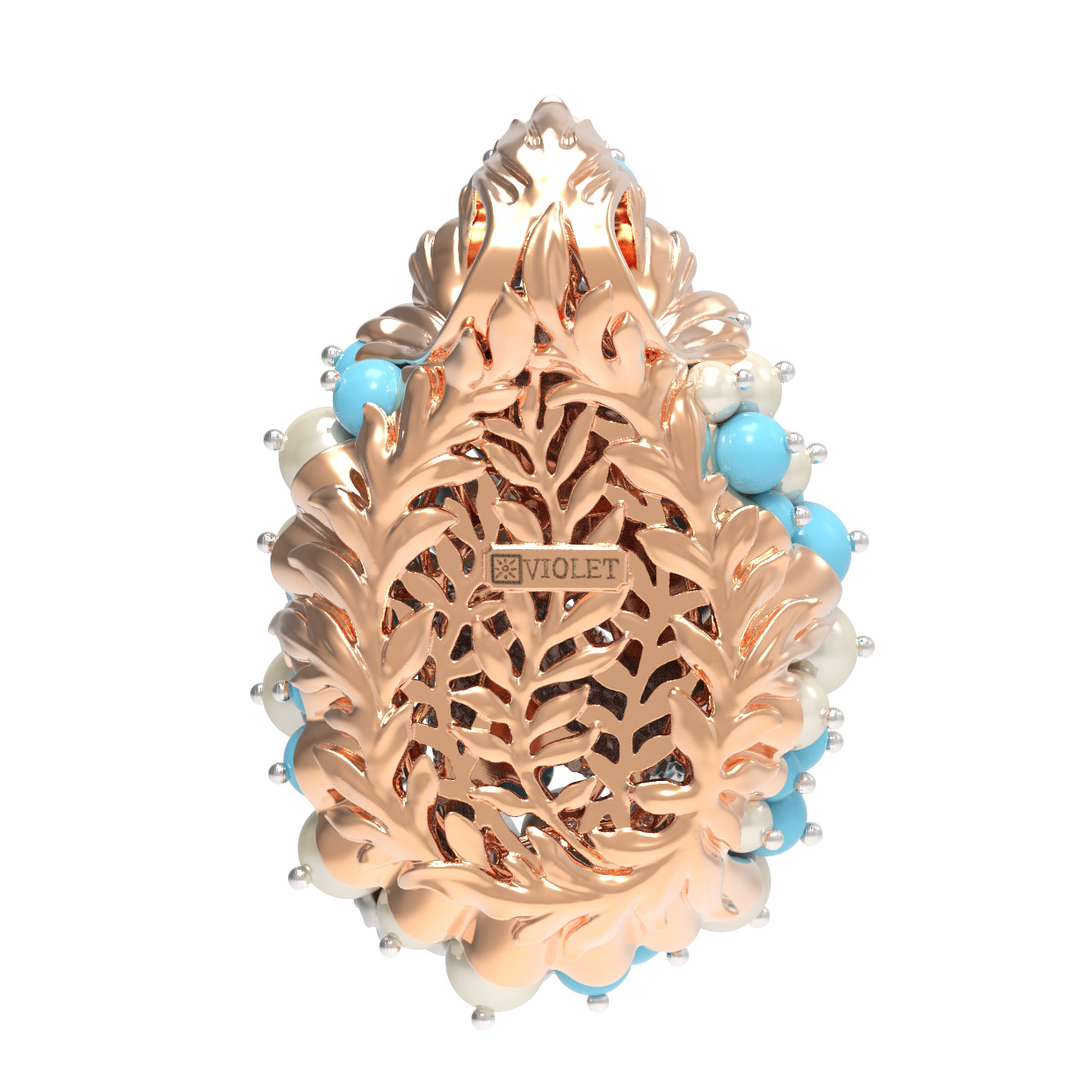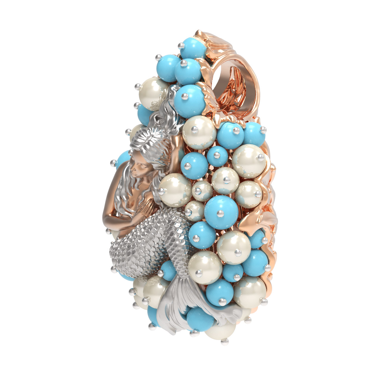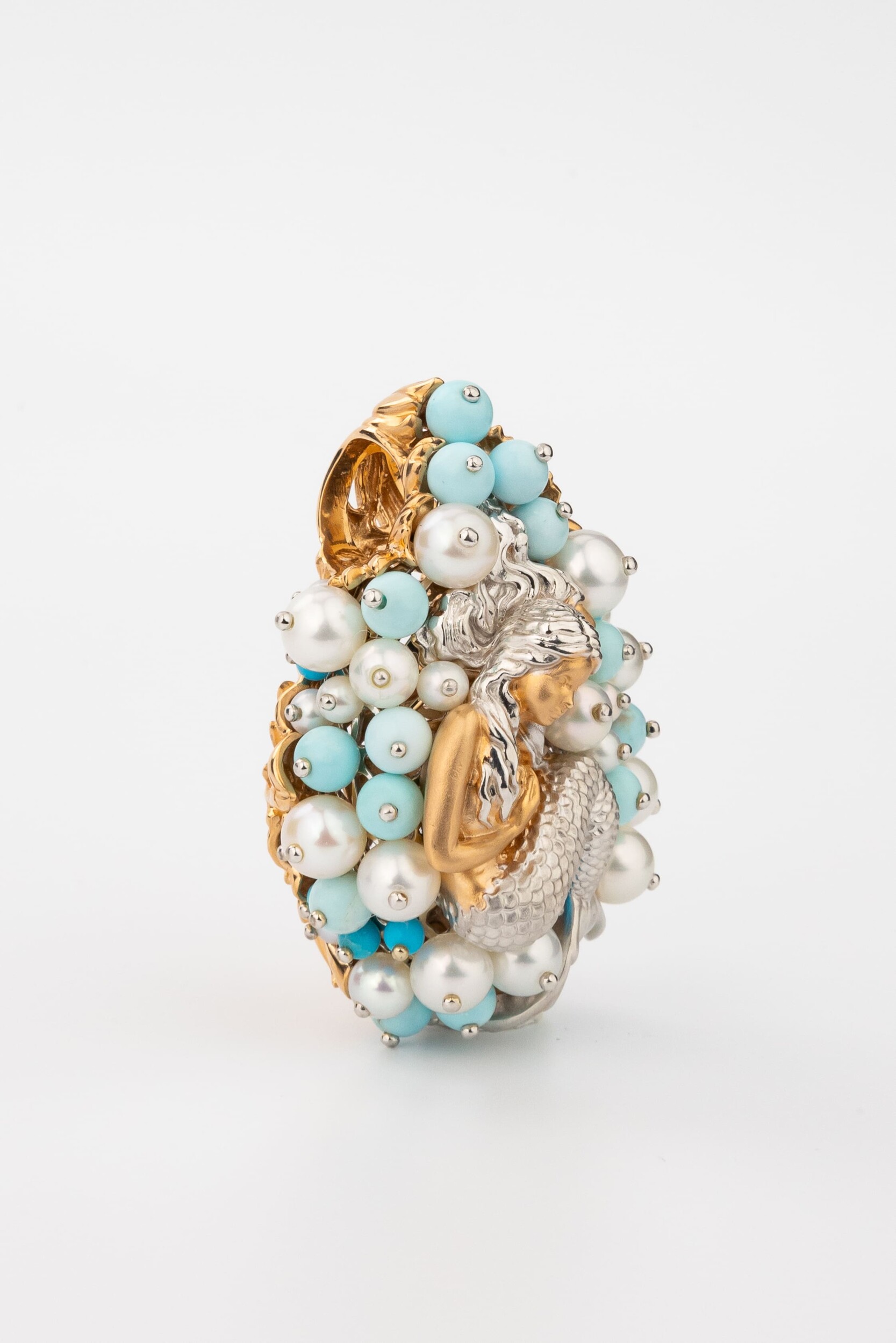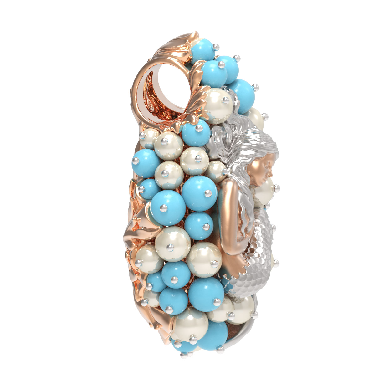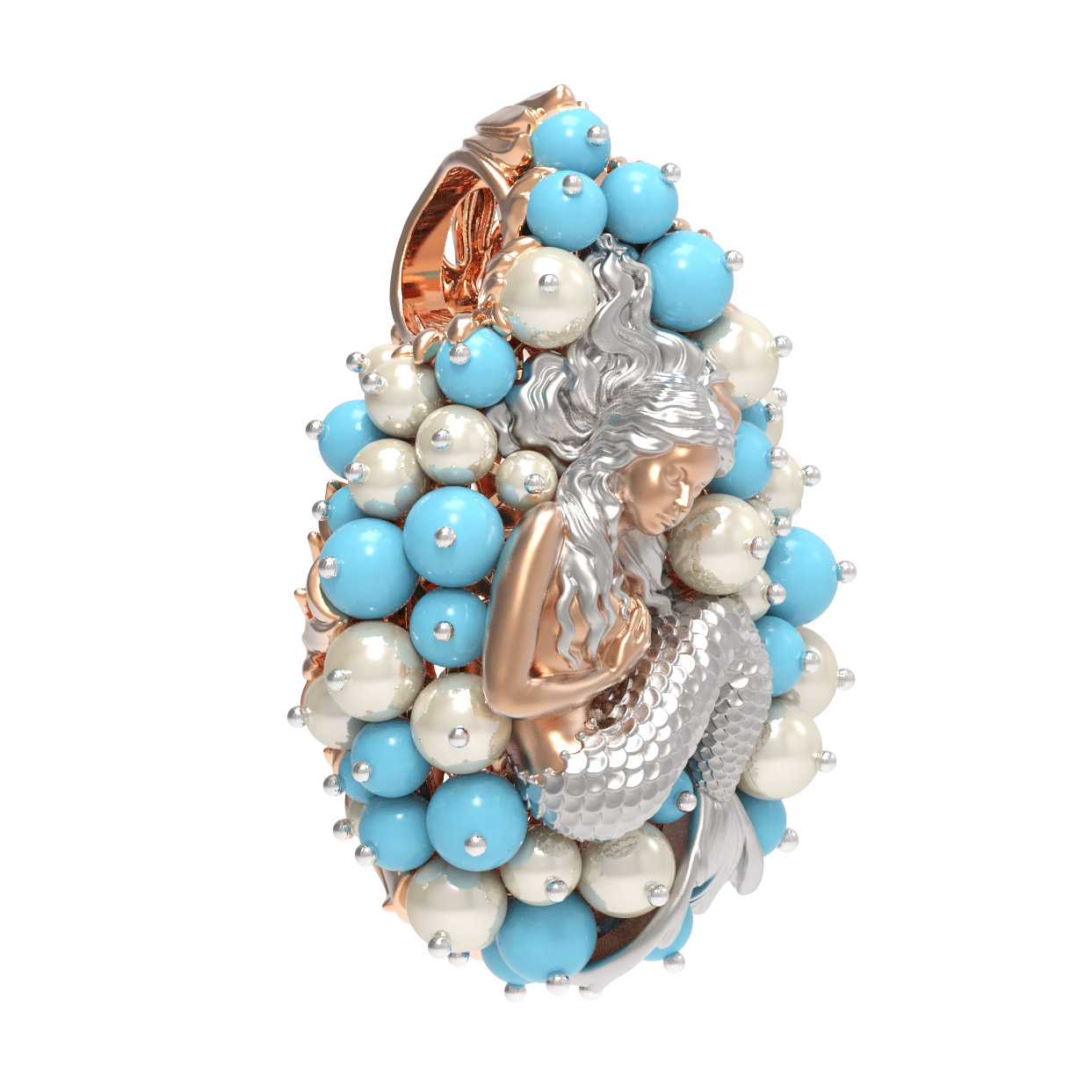 Подвеска из золота c жемчугом и бирюзой
