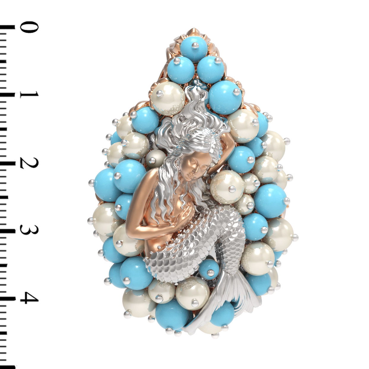 Подвеска из золота c жемчугом и бирюзой