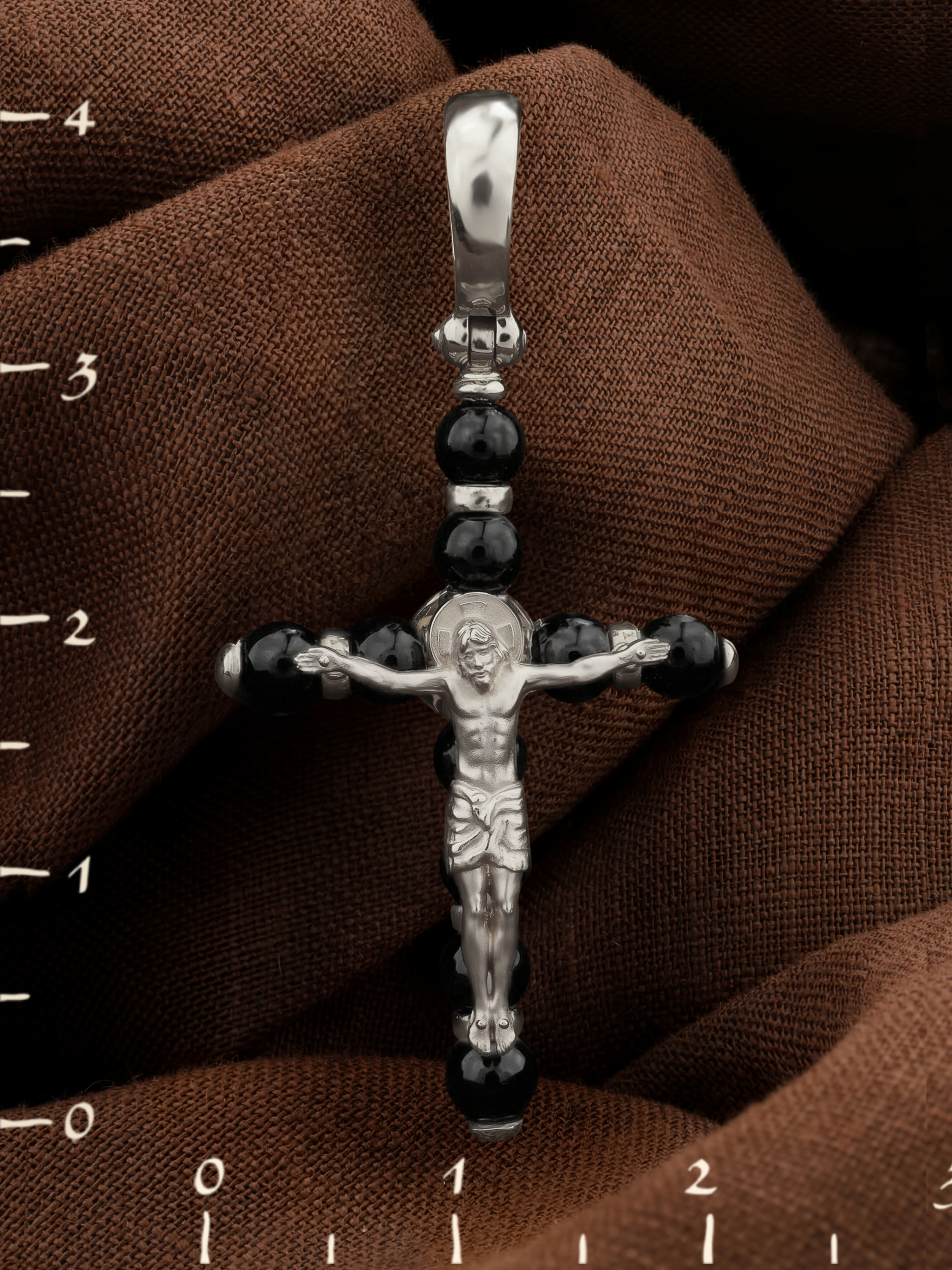 Крест из белого золота c ониксом