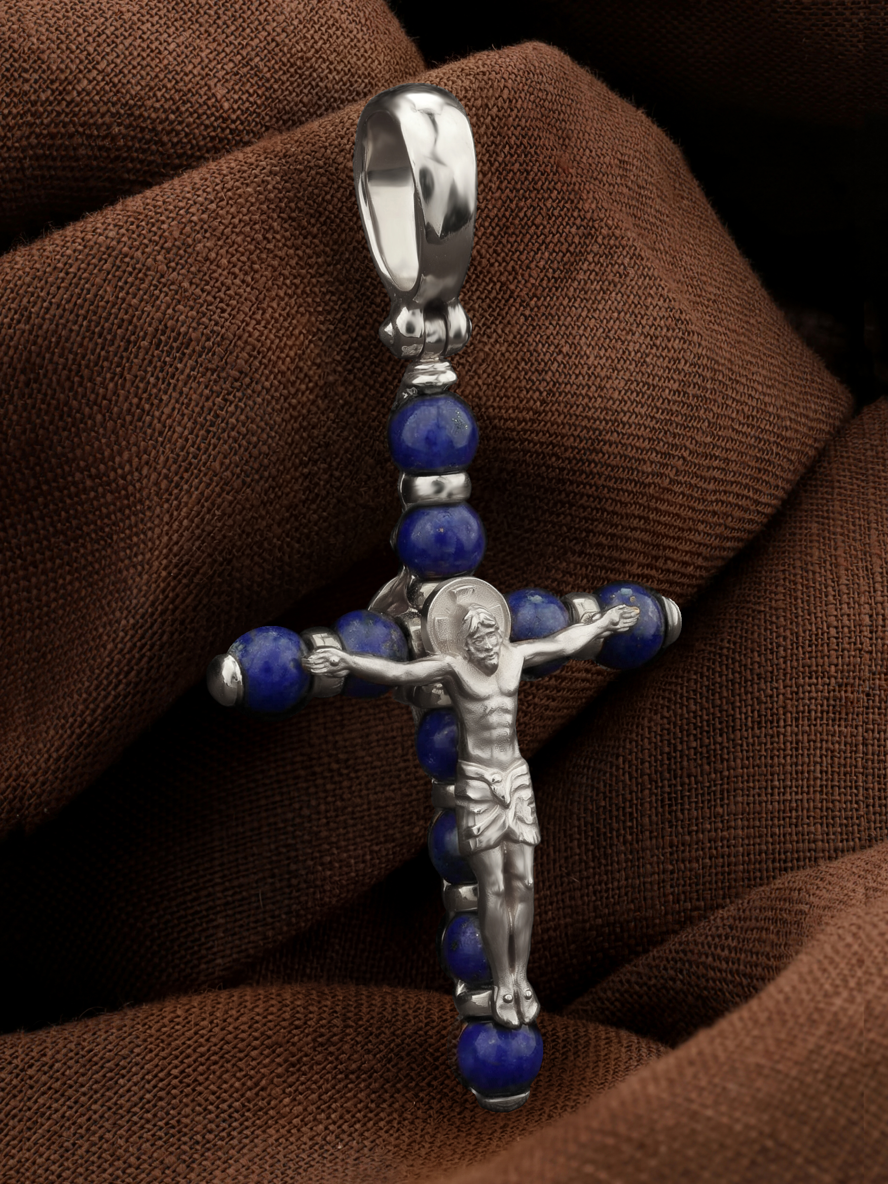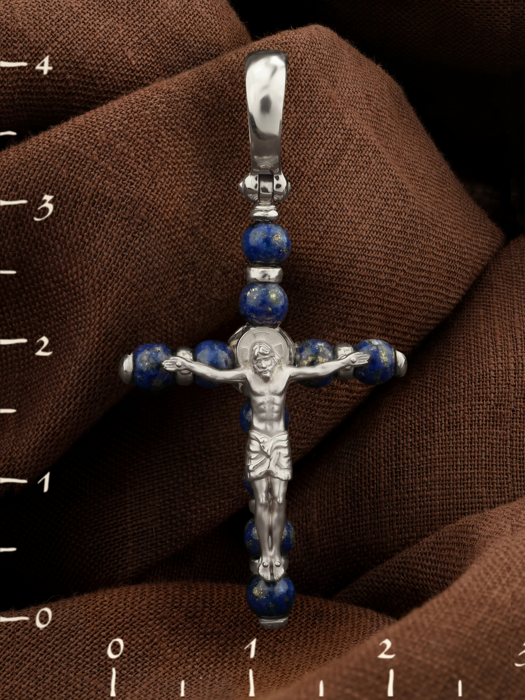 На лицевой стороне креста изображено Распятие Господа и Спасителя нашего Иисуса Христа. Своими крестными страданиями Господь смыл наши грехи, покрыл наш долг перед Богом или, на языке Писания, нас «искупил». В Голгофе сокрыта непостижимая тайна бесконечной правды и любви Бога. Крест стал символом победы добра над злом, жизни над смертью, напоминанием бесконечной Божьей любви, предметом радости. Воплотившийся Сын Божий Своею кровью освятил крест и сделал его проводником Своей благодати, источником освящения верующих.
