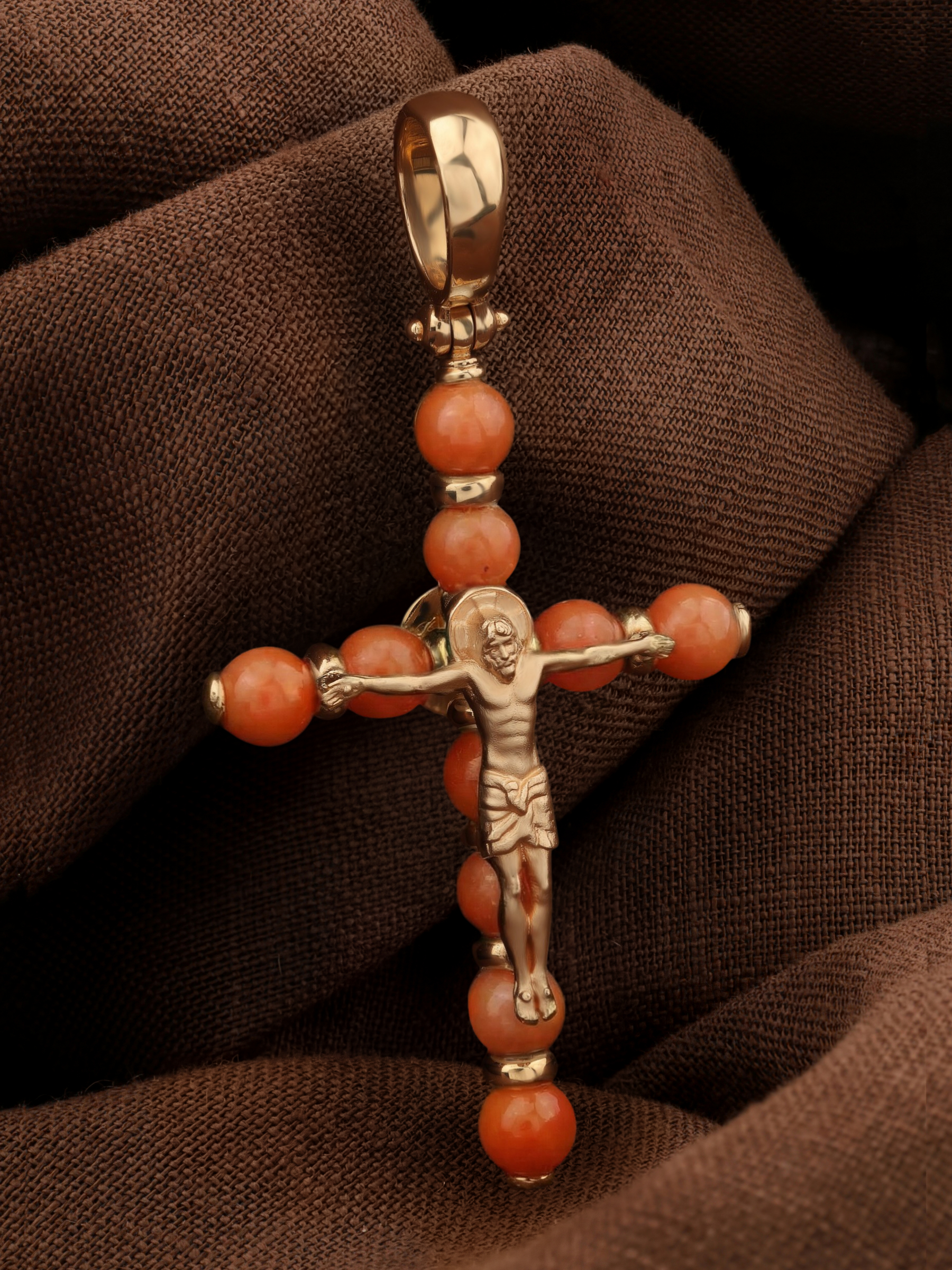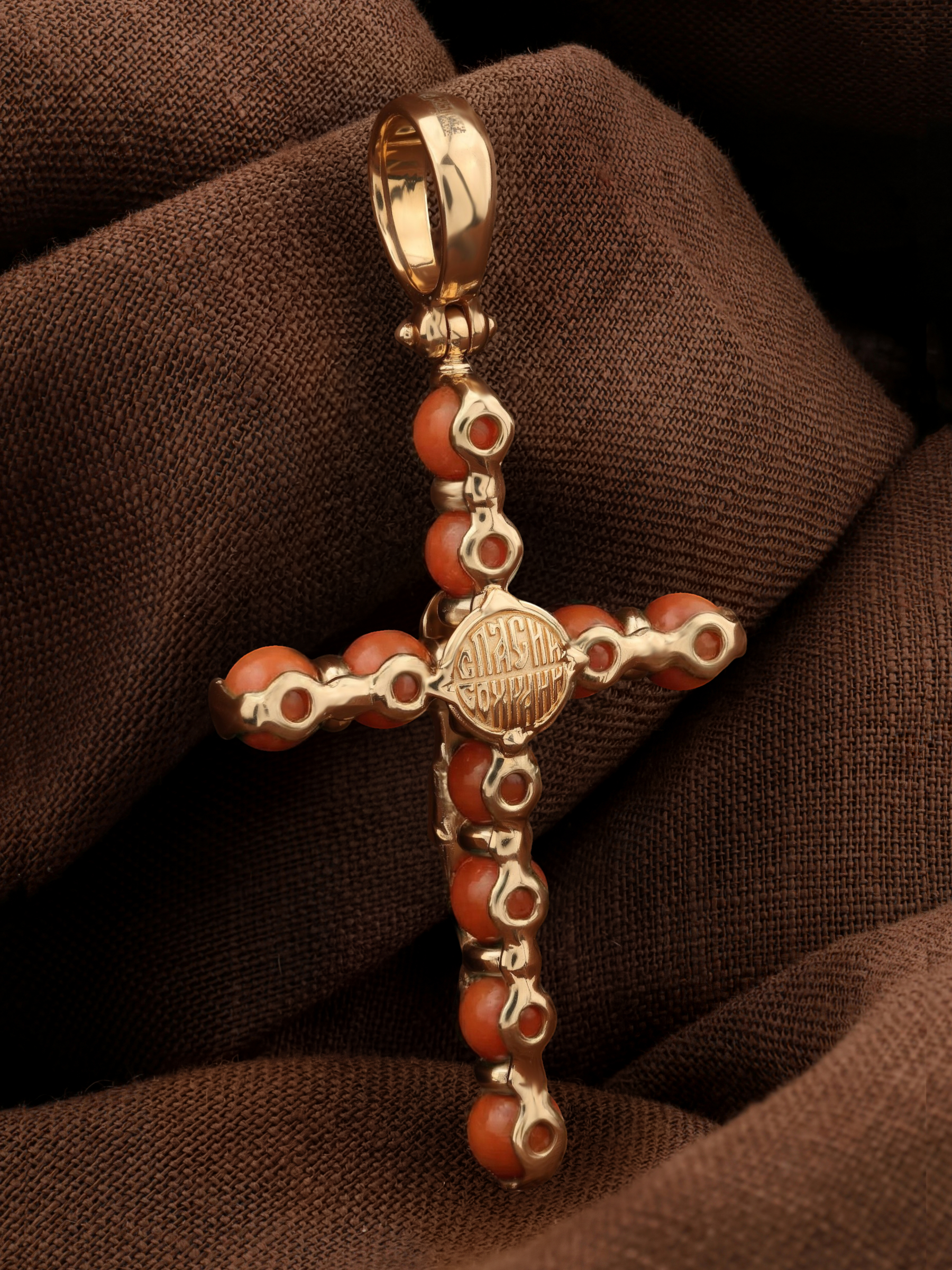 Крест из золота c кораллом
