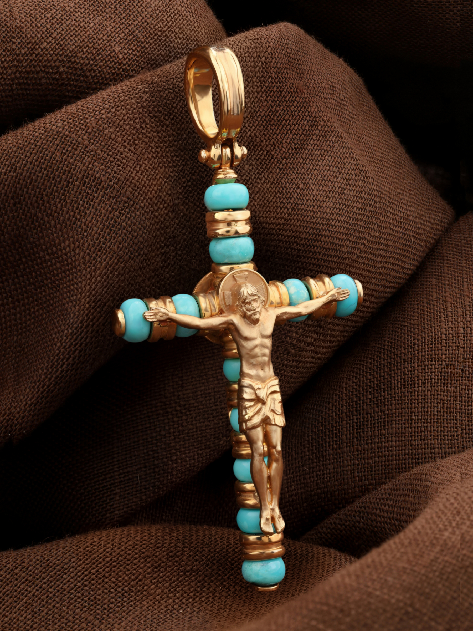 Крест из золота c бирюзой